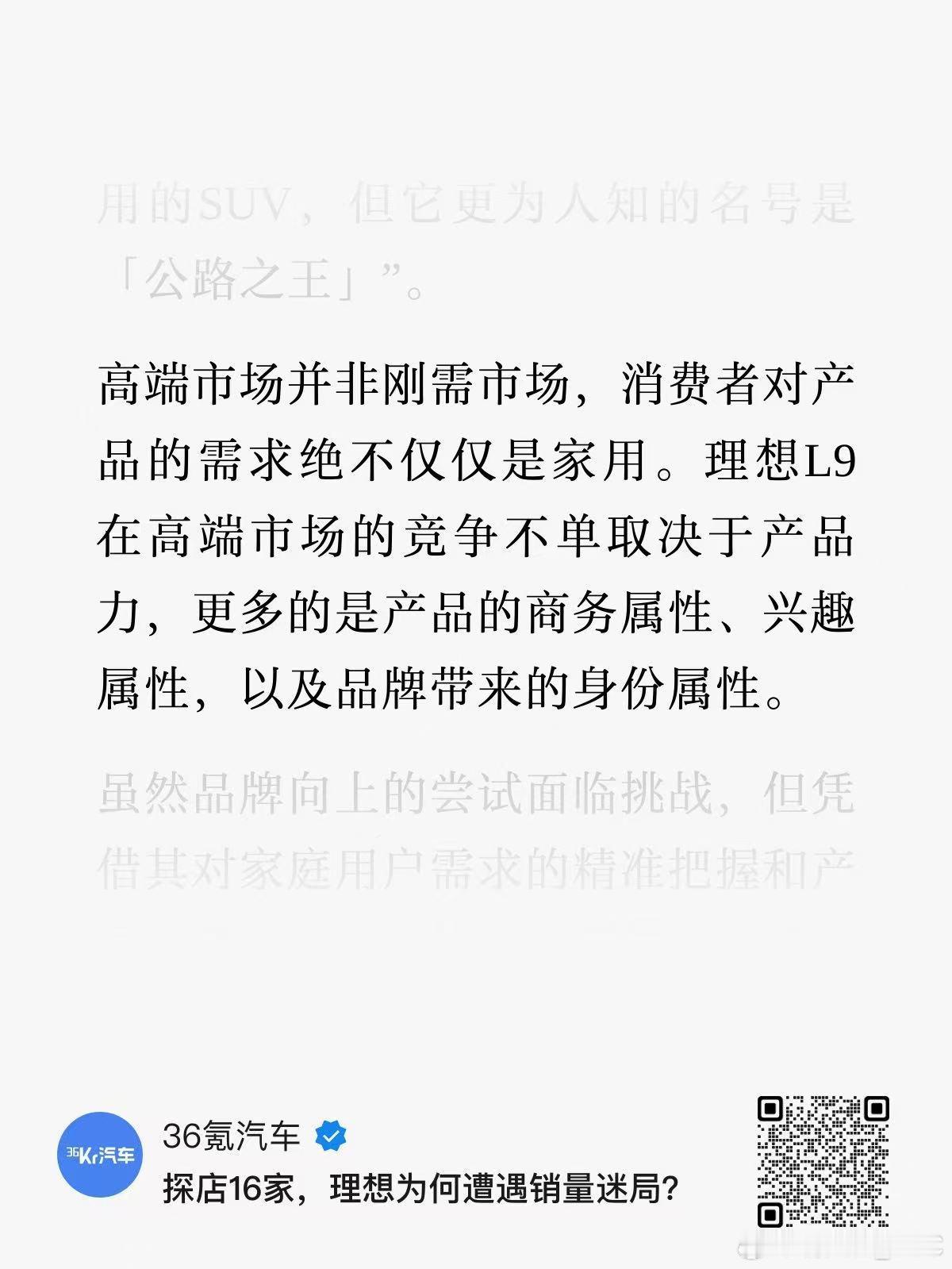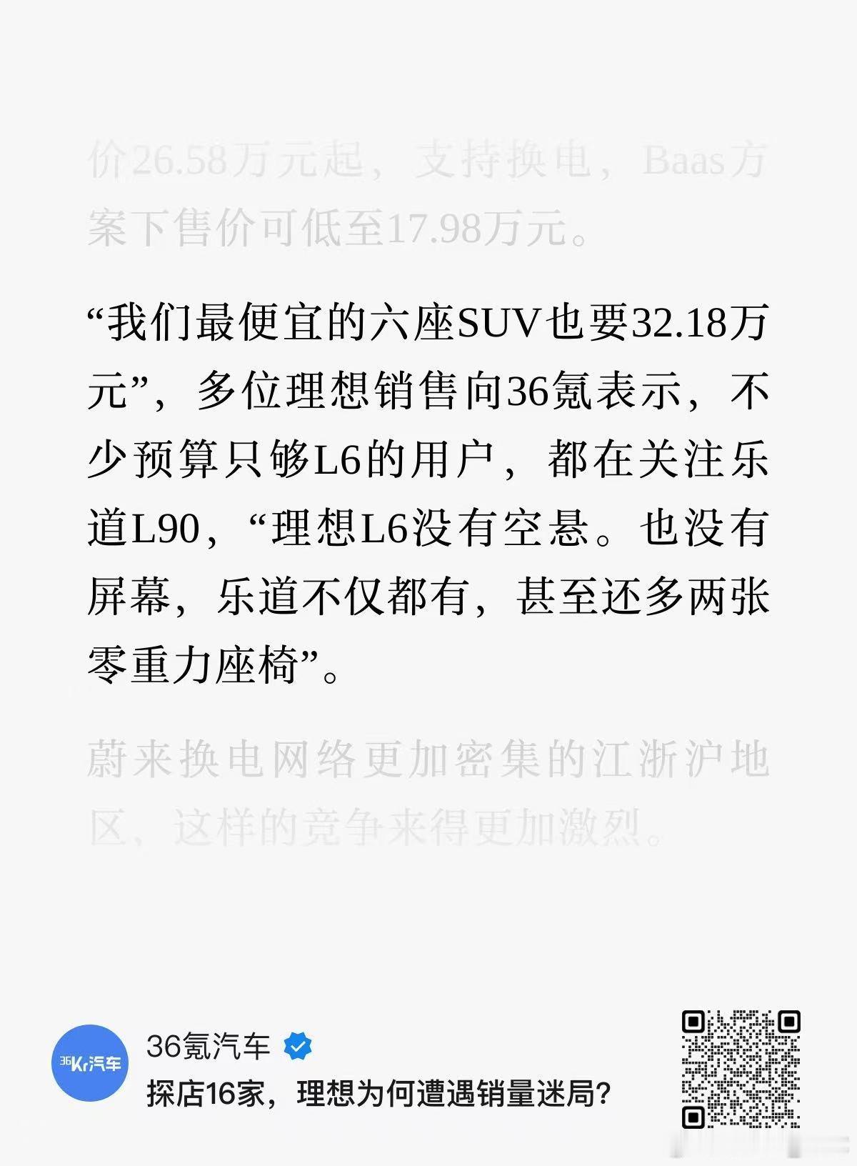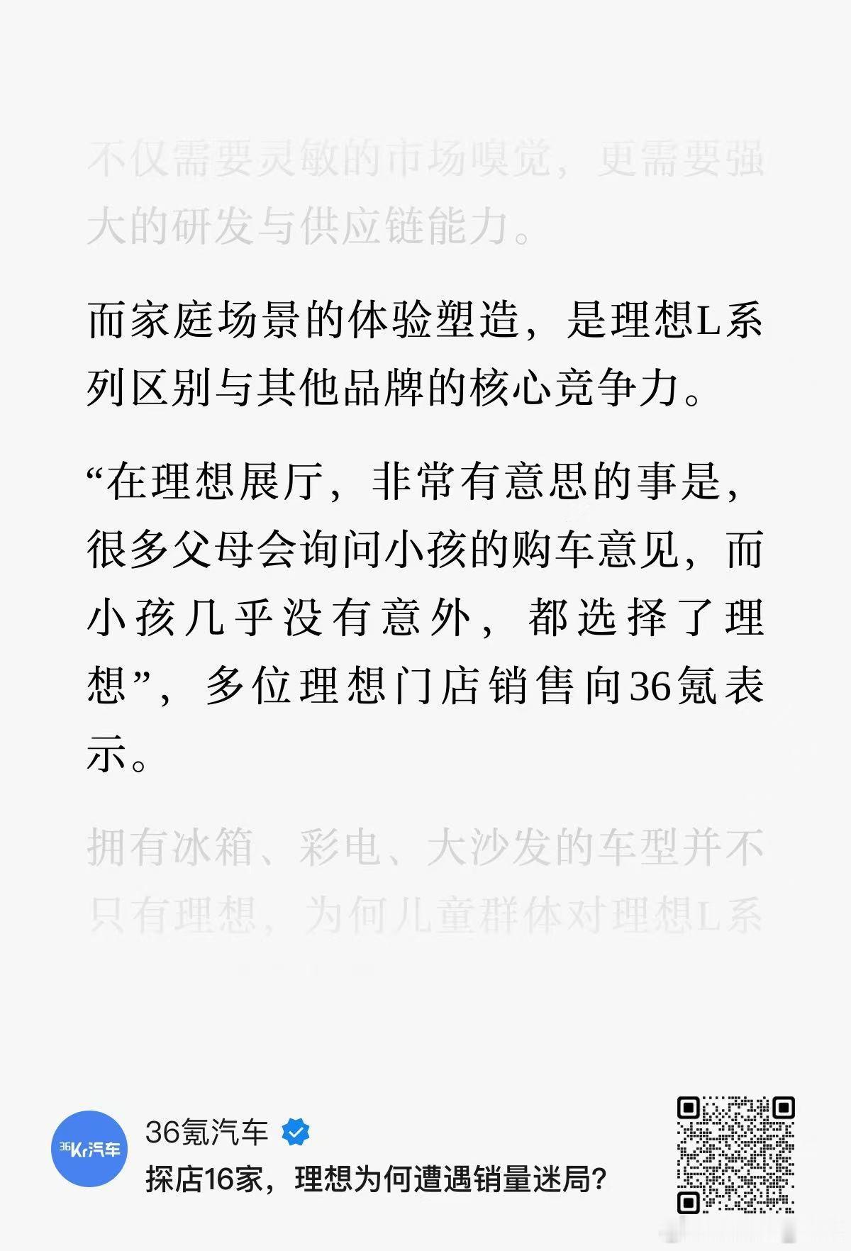 理想这波销量回落,问题不在“车不行”,更多是路子走窄了。“移动的家”曾是理想最锋利的武器,L 系列把家庭场景做到了行业标杆。但当品牌长期把“家用”作为唯一标签时,用户心智里,理想也就越来越像一台只为家庭服务的车。尤其是在高端市场。当舒适已经是标配,高端用户会把更多注意力放在“身份感”“商务场景”“兴趣属性”上。L9 的用户画像从“商务+家庭”收缩成以家庭为主,那些在商务形象和场合感上更敏感的一群用户,自然会被问界 M9 吸引过去。而在刚需市场,逻辑更简单:看性价比。不少预算只够 L6 的用户,都在对比乐道 L90。L90 有空悬、有大屏、后排体验更强,还多两张零重力座椅。这样一比,L6 的自然进店量下来,也就不难理解了。理想其实也意识到问题所在。i6 换上“理想,就是活成自己喜欢的样子”这句口号,本质上是在给品牌扩边界——从单一的“家用车”,拓展到更广义的“生活方式”。客观来说,在 25–30 万的家庭用车市场,理想依然占据产品、用户与口碑的黄金点位,「理想同学」依旧是拿下小朋友的“杀手锏”。但接下来,理想能不能用新的产品理念和技术实力,再造一枚真正意义上的爆款:明年的 L9 改款,是一个非常关键的机会点。理想汽车