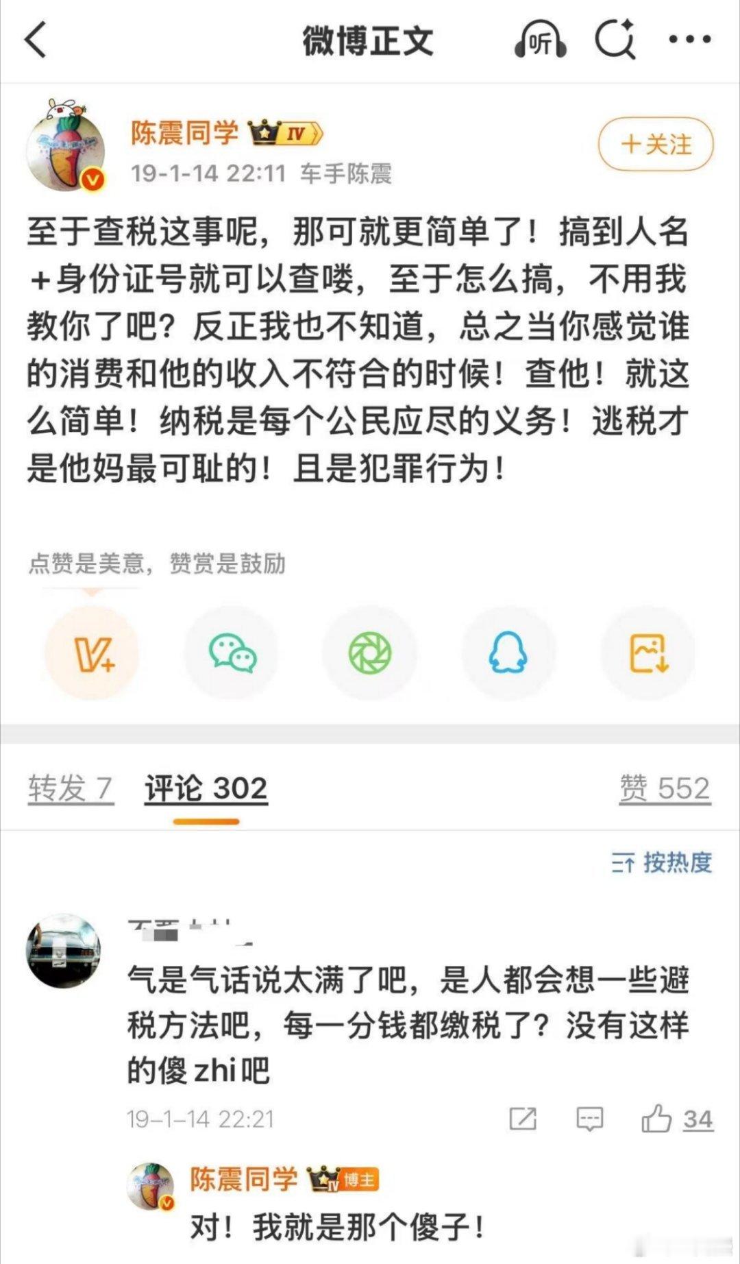 陈震偷税案央视:经查,2021年至2023年,陈震通过隐匿收入、转换收入性质等方式,少缴个人所得税共计118.67万元。追缴税款、加收滞纳金并处罚款共计247.48万元。目前平台对陈震的处置也升级了,多平台已经禁止关注,抖音上显示陈震违反法律法规和政策被禁止关注(图二)。多家企业删除此前双方的合作内容(图三)感觉陈震这次不是封禁15天那么简单了。有网友还翻到19年陈震对“纳税”的相关博文,陈震说:纳税是每个公民应尽的义务!逃税才是他妈最可耻的!且是犯罪行为!陈震偷税追缴并罚共计247.48万元陈震同学的同学