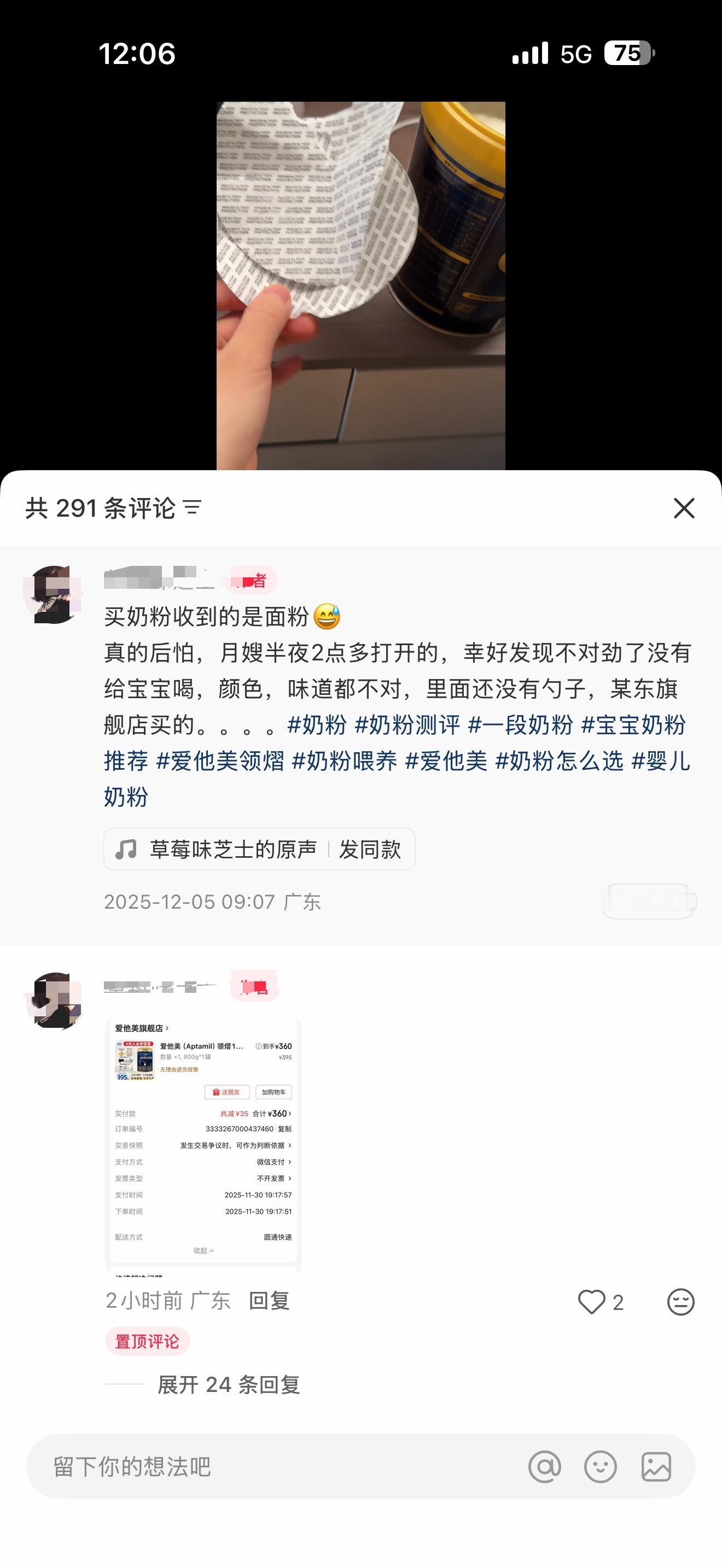 有网友在京东给未满月的婴儿买的爱他美奶粉,竟然是面粉购买店铺还是爱他美品牌授权店铺,不要太离谱!