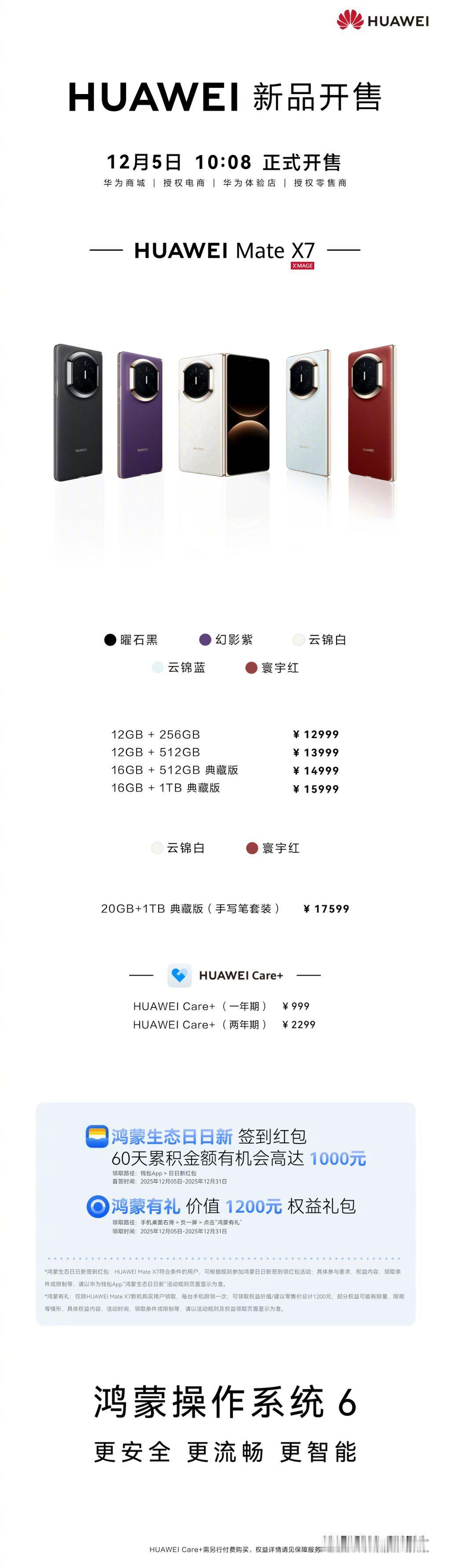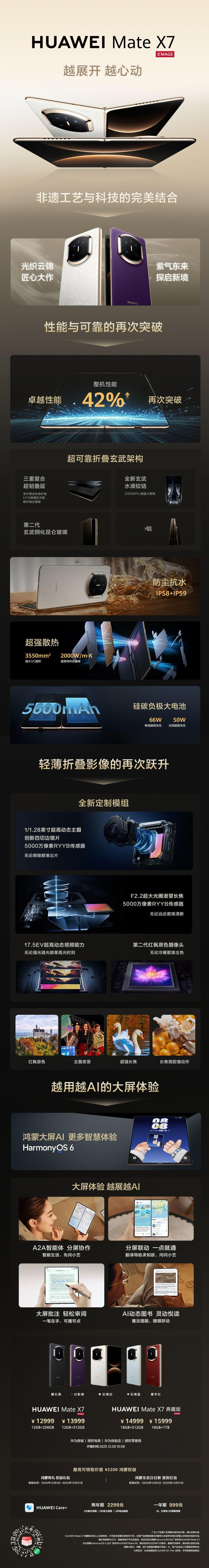 华为Mate X7今日开售!首销日在线下反响热烈,而这款产品之所以如此受欢迎,确实是原因的,这一代在外观上采用了非遗云锦工艺,搭配“时空之镜”Deco设计,整体更尊。而除了外观,这代的配置也十分豪华,第二代玄武钢化昆仑玻璃、全新玄武水滴铰链、第二代红枫影像系统、商用的A2A智能协作体等,可以说相比上一代实现了全方位的提升。如果你之前从未用过折叠屏手机,那么这一代无疑会是一个很好的选择。华为MateX7再现抢购热潮华为MateX7全色售罄