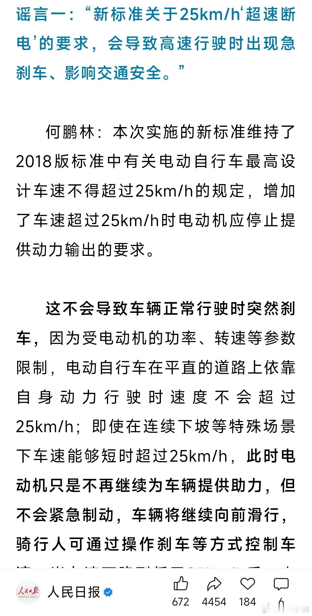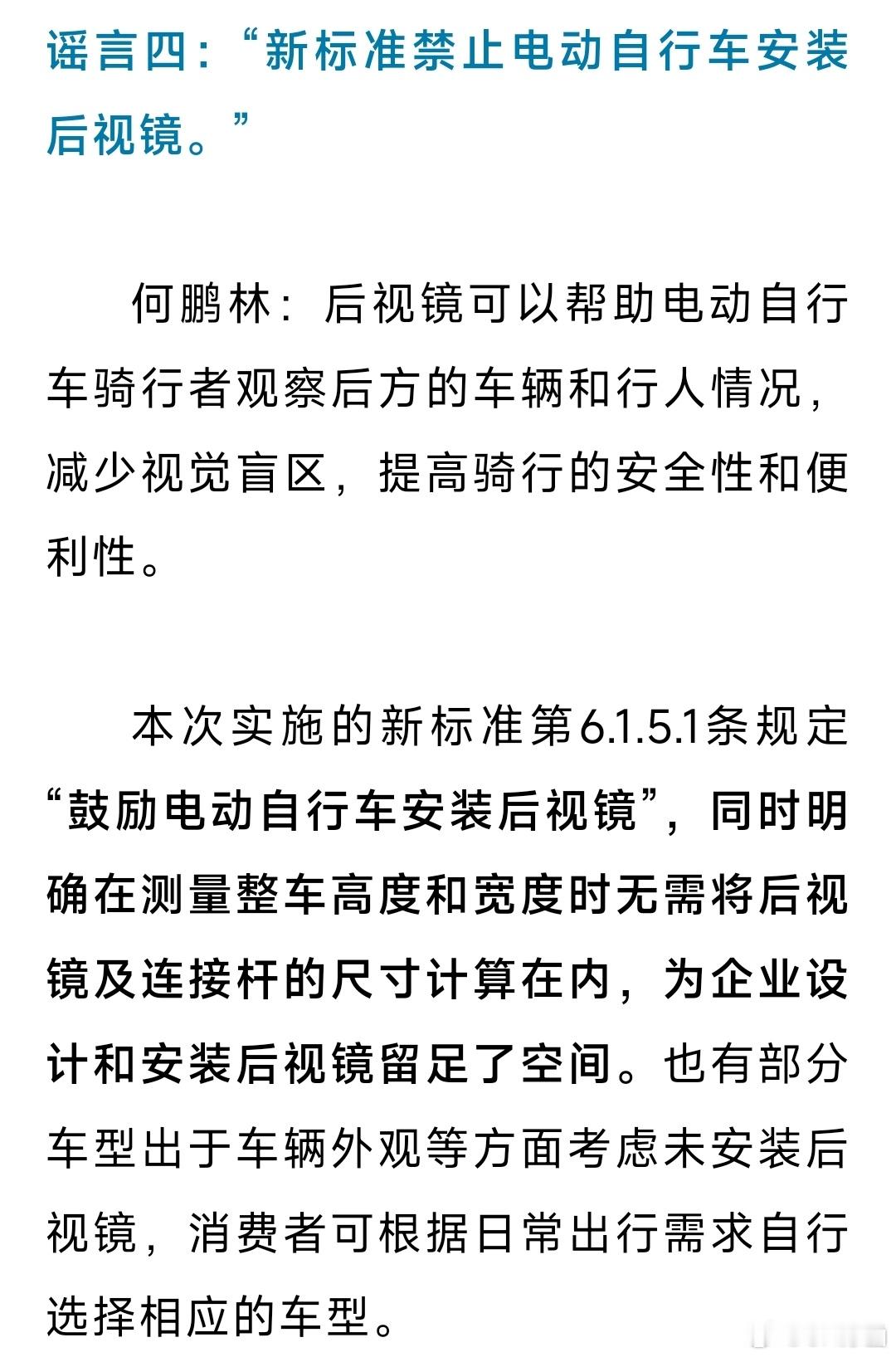人民日报辟谣了!新新国标电动车也能装后座!可以带娃!另外还有4个谣言也都辟谣了,包括:▷ 超过25km/h限速断电,但是只会滑行不会刹车;▷ 新标准没有要求安装金属鞍座;▷ 没有禁止安装后视镜;▷ 新标准没有导致电动自行车门店大面积关闭。