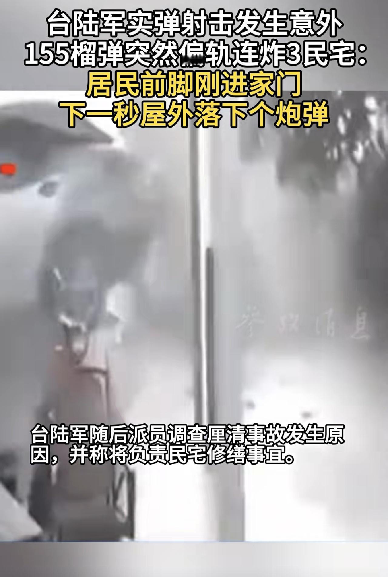 离了个大谱! 台军实弹射击,炮弹连炸3民宅! 台陆军4日在彰化县溪州乡进行实弹射击时,炮弹不慎打到一户民宅内,随后炮弹又弹飞撞到250米外的民宅墙壁,报道直言:“吓死人!” 一、实弹射击地点居然附近有居民,怎么选的地点? 二、射炮是需要具体参数的,怎么会射偏的? 三、实弹射击,还是榴弹炮,没伤到人,是该庆幸没有伤及无辜,还是该疑惑炮弹炸不响?