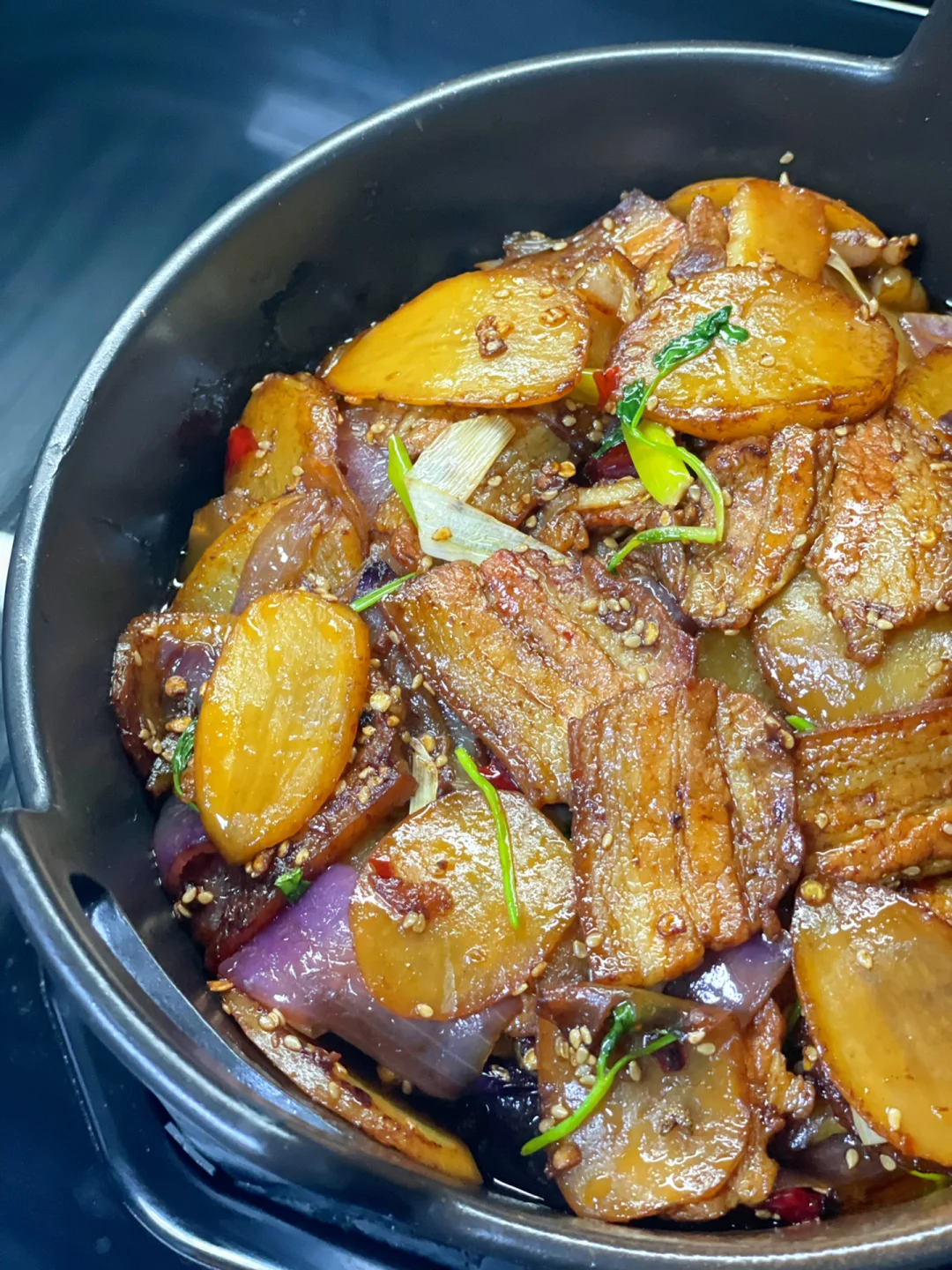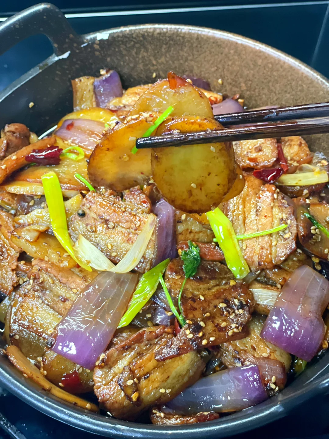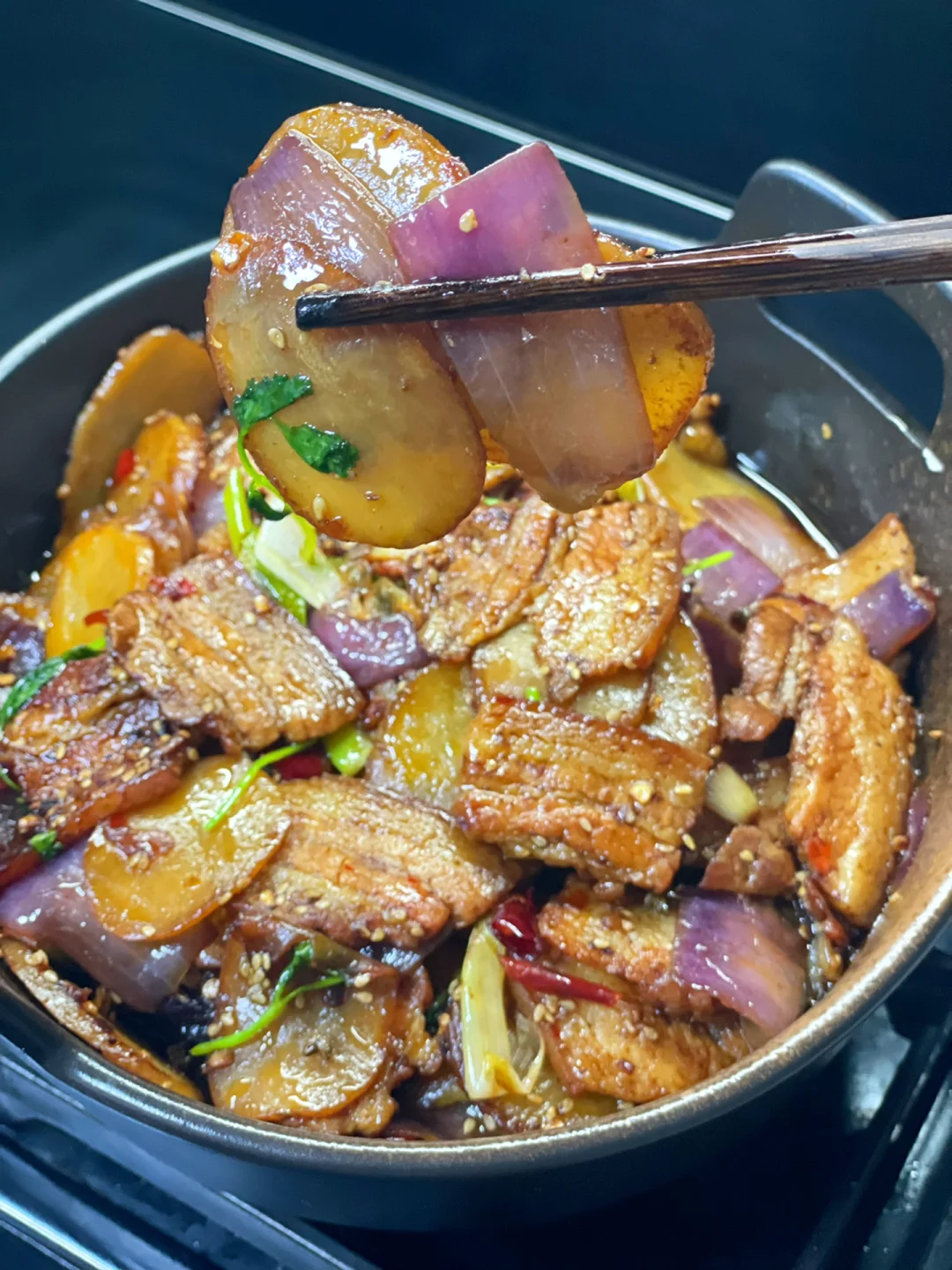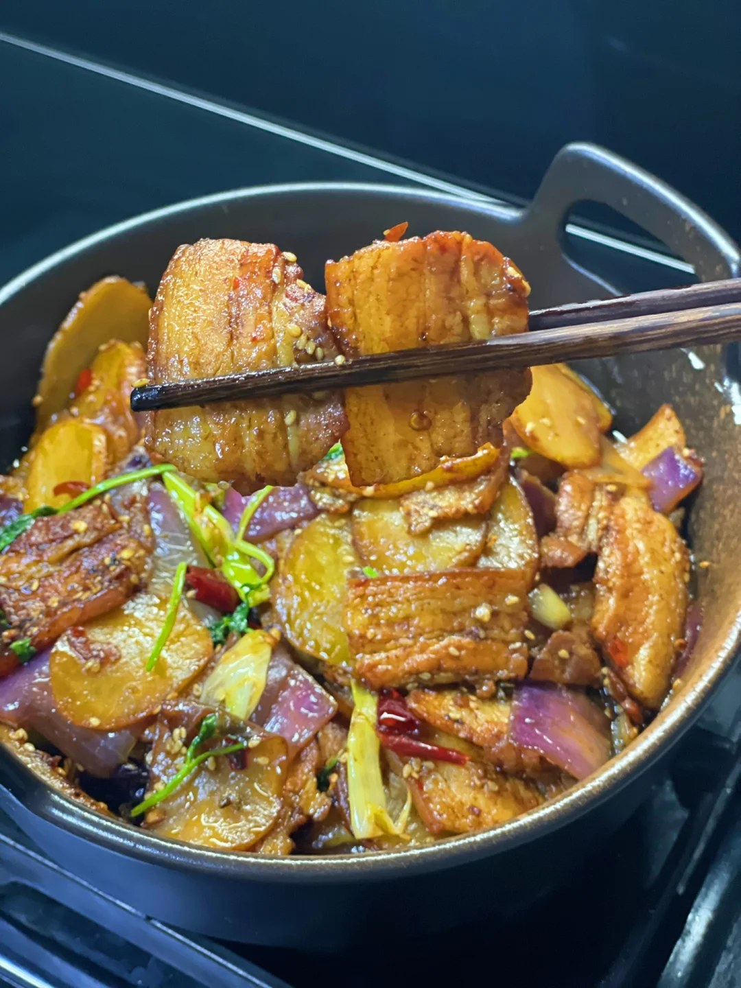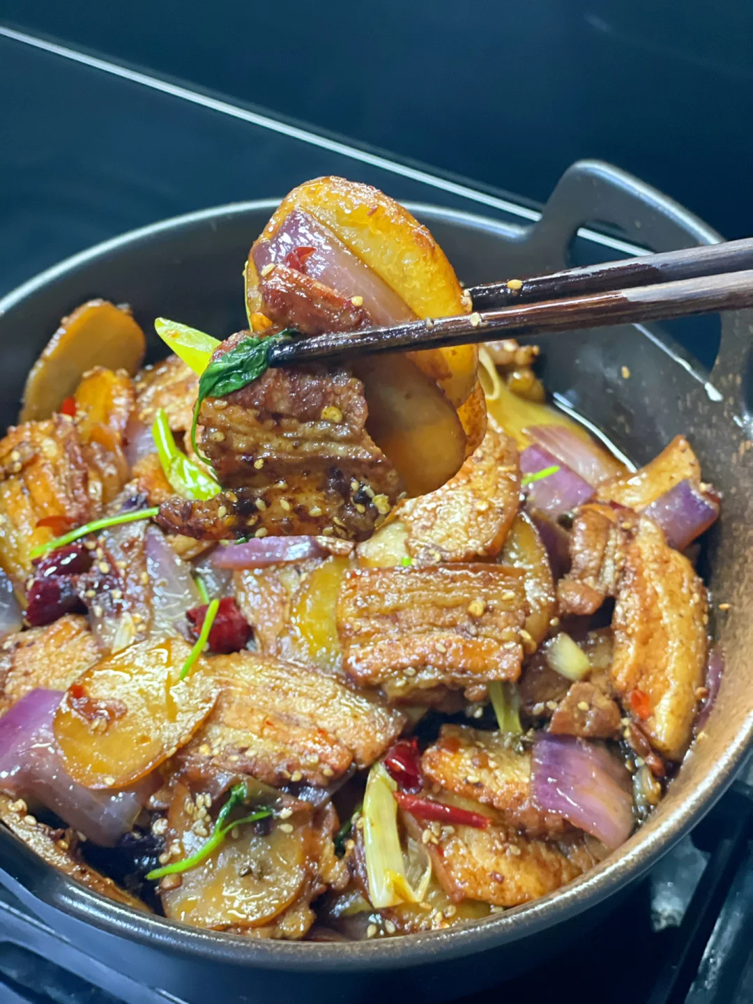 味道很巴适的干锅五花肉,五花肉煎得干滋滋的,配上香辣软烂的土豆片,也太下饭了,每次做这道菜都能干掉两碗饭🍚🍚