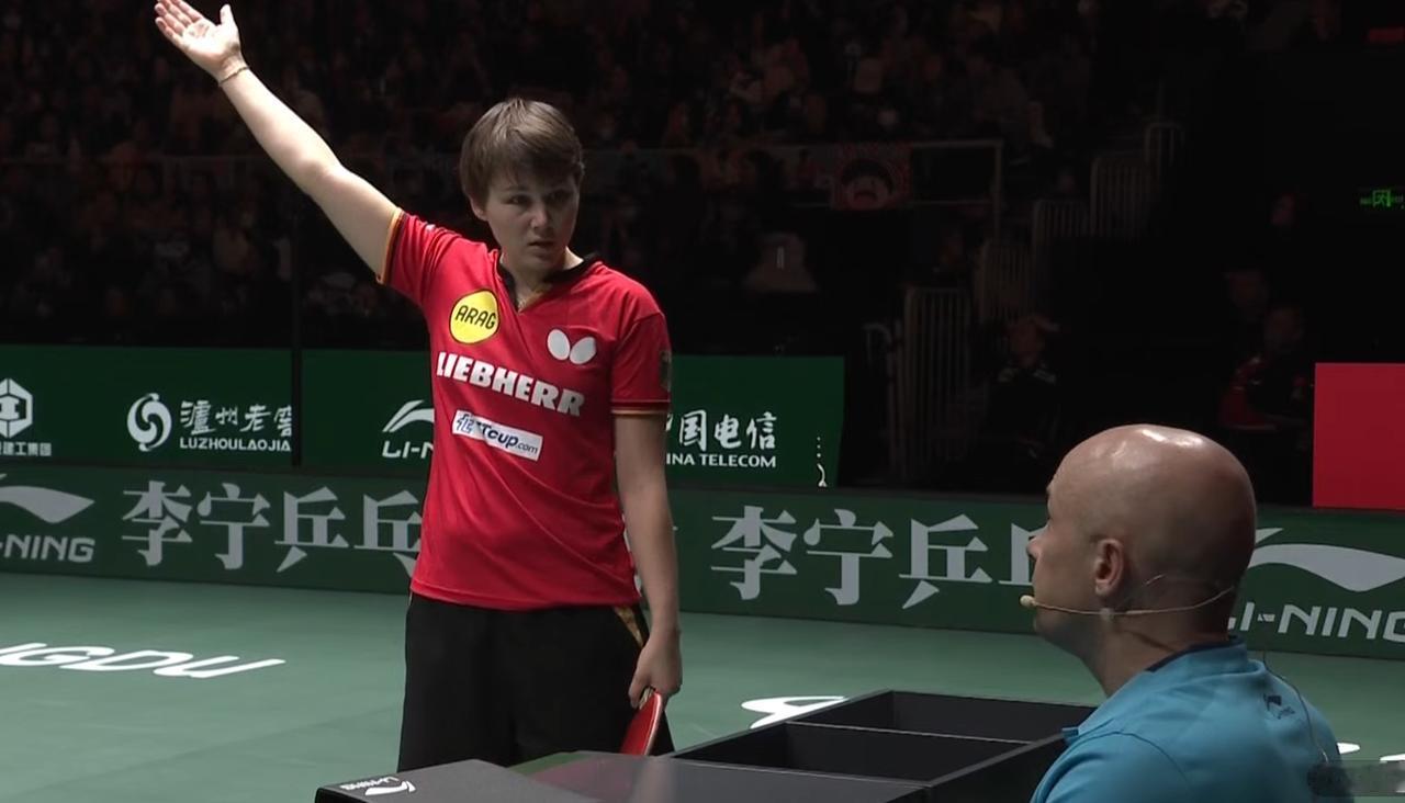 突发,米特兰姆输球后, 认为孙颖莎擦网了 请求了鹰眼, 结果还真擦网了。 当