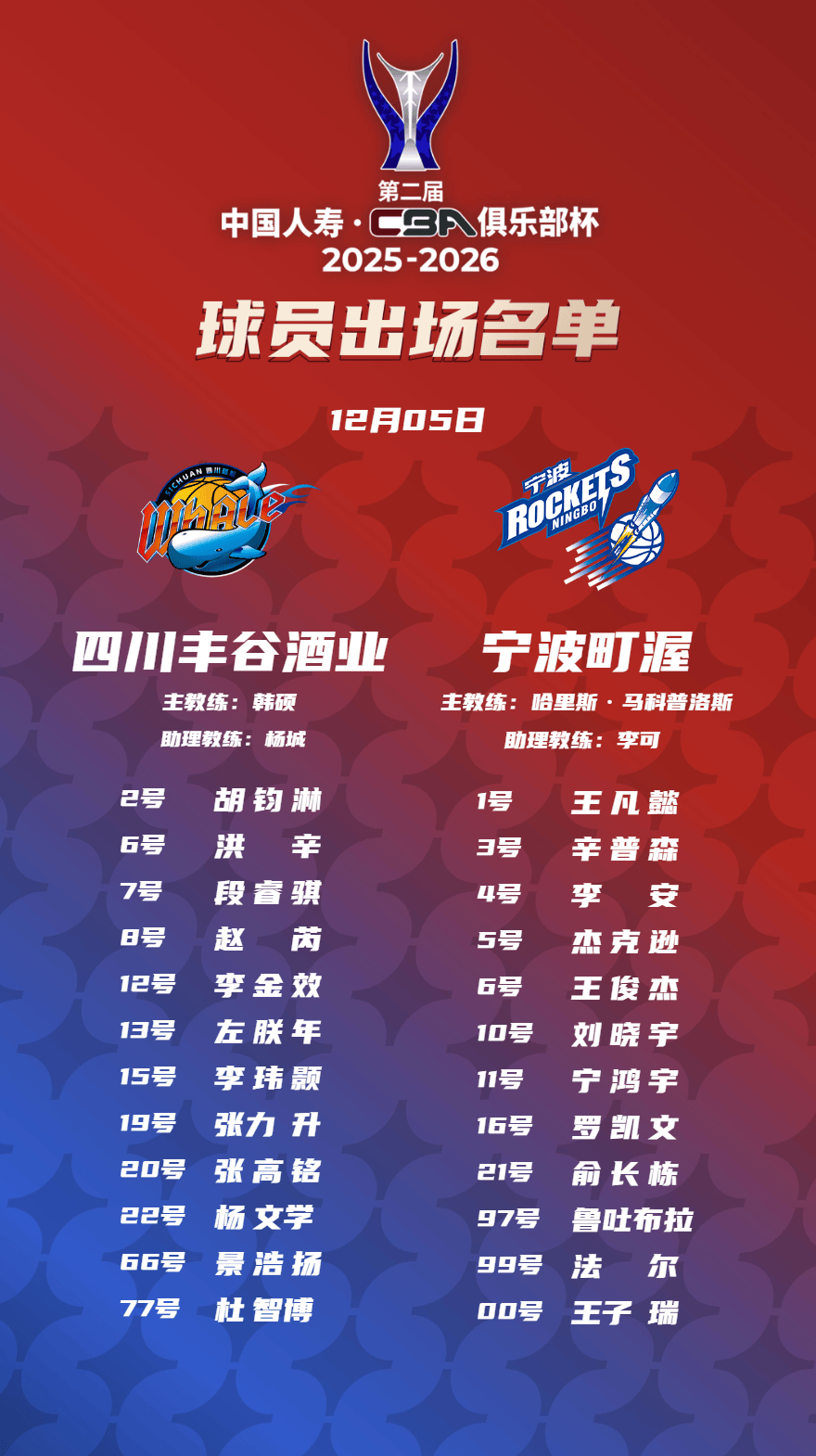 虎扑12月05日讯今日CBA俱乐部杯,四川男篮将对阵宁波男篮。