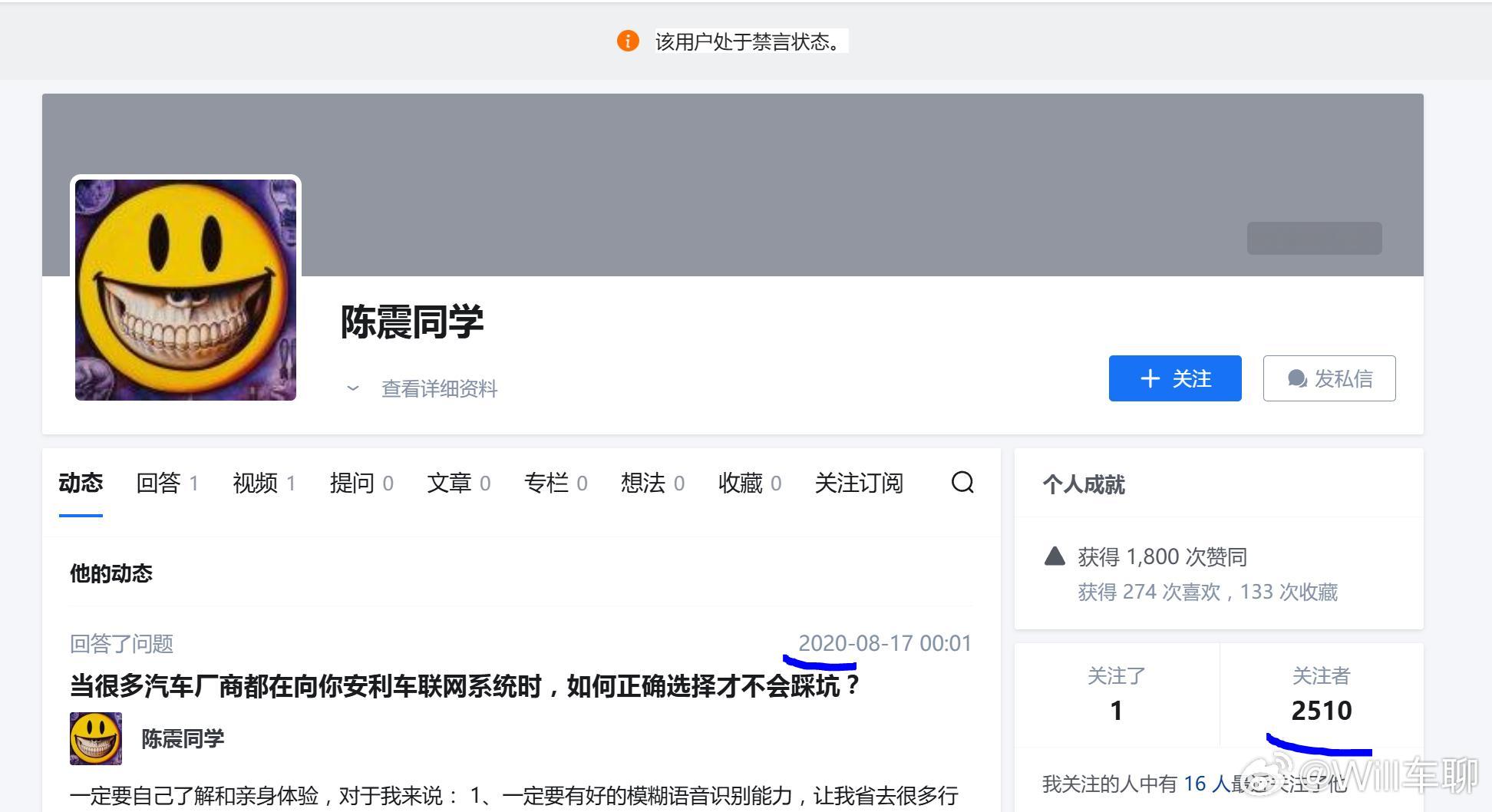 现在陈震连微博的小号都被禁言了。早上才发了出门开华为智驾的图片,中午就被禁言了。这是真的要全网封杀他,不让他发声的节奏了。就连知乎的账号,才两千多粉丝,陈震只发过一篇回答的账号都被禁言了……陈震禁言