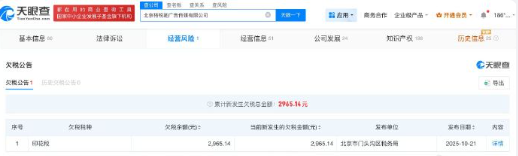 据报道,12月4日晚,陈震多平台被禁言。第三方数据显示,“陈震同学”视频平台近30日掉粉4.53万。此外,其1-20s视频广告报价为35万,21-60s视频广告报价为60万,60s以上视频广告报价为80万。天眼查App显示,陈震名下共关联5家企业,其中4家为存续状态,包括北京格锐驰广告传媒有限公司、北京格锐新峰信息技术有限公司等,陈震在上述企业中担任监事等职务,版图涉及广告传媒、商贸等领域。此外,陈震名下北京格锐驰广告传媒有限公司现存1则欠税公告,欠税余额2965.14元,欠税税种为印花税。