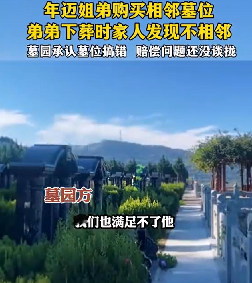 “这个错误太低级了!”陕西渭南,一家人考虑到年迈的姐弟年纪大了,就在墓园花70000元提前给他们买了个相邻墓位,不料,弟弟下葬当天,却发现两个墓地根本不挨着,墓园承认是他们搞错了,但怎么赔偿却成了大问题 张女士介绍,他们一家人兄弟姐妹众多,家里的安排其实很周到。姐姐年纪大,哥哥重病的时候,全家人想着把墓位早早选好,让姐弟俩将来能靠在一起,算是给长辈留个念想。花钱不心疼,图的是个安心。墓位选好了,合同也签了,哪怕价格不便宜,大家觉得值 哥哥去世那天大雨不停,流程都按规矩走着。可真正下葬时才发现墓碑刻错了,工人把名字刻在了另一片区域的墓位上。家属当场傻眼,可天在下着,亲戚朋友都到了,时辰也卡着,根本没时间让大家再折腾。只能把心里的那点不情愿咽下来 问题就出在这之后。墓园承认搞混了,也愿意赔点钱,但开口只有六千。家属提出一万五,希望能体现事情的严重程度,可双方一直谈不拢 对家属来说,这块墓不是商品,而是情感落点;对墓园来说,赔偿是成本。两边的理解压根不在一个频道上 这个事让人感触挺深。买墓位这种事,说到底是在买心安。如果花了钱还得在最难过的时刻面对这种差错,那种被敷衍的感觉比事情本身更让人难受 墓园也不是不能犯错,人都有疏漏,只是这种地方一旦出错,影响的不是几千块钱,而是一个家庭的心理寄托。更何况,下葬那天雨大、人多、时辰紧,家属选择将错就错,不代表事情就翻篇了,而是当场无可奈何 这件事也提醒我们,在办理类似重要事宜时,合同要写得明明白白,位置编号、示意图最好都附上,交接时再三确认,避免日后争议。毕竟,有些遗憾,不是钱能完全弥补的