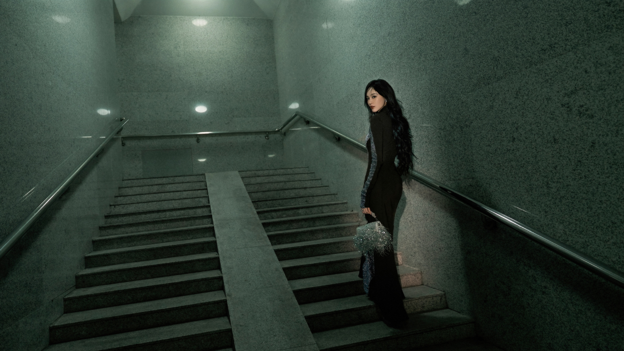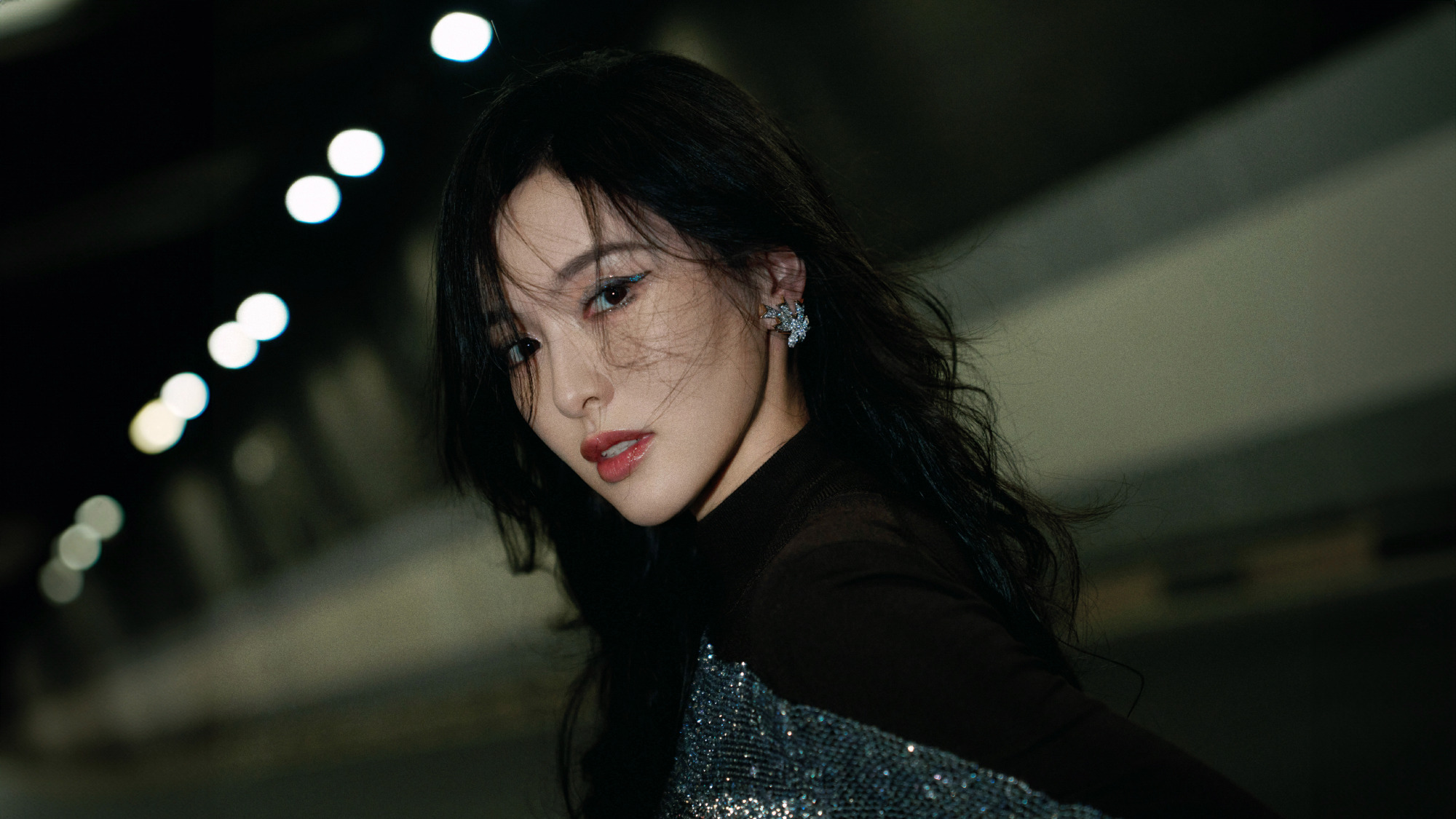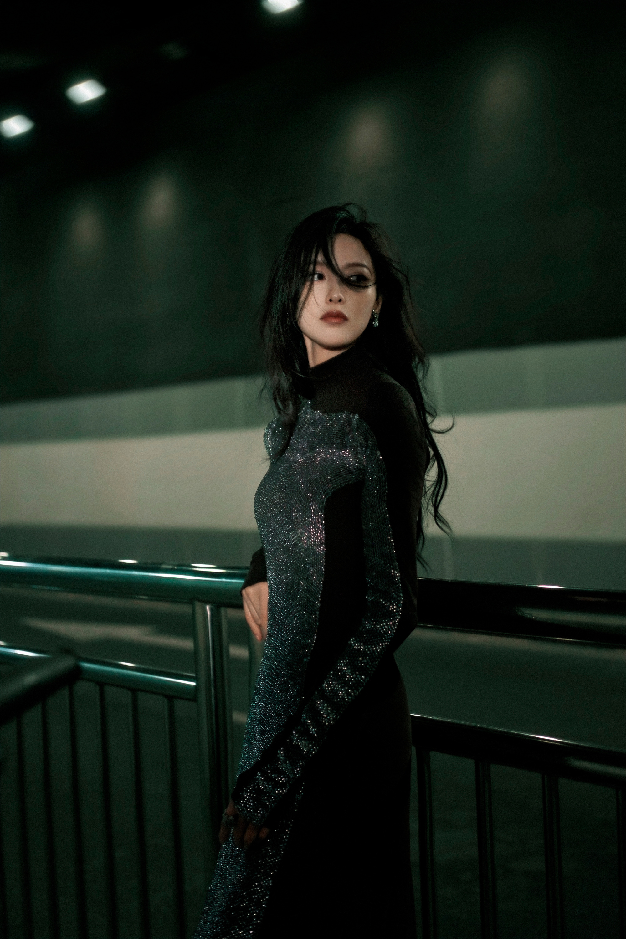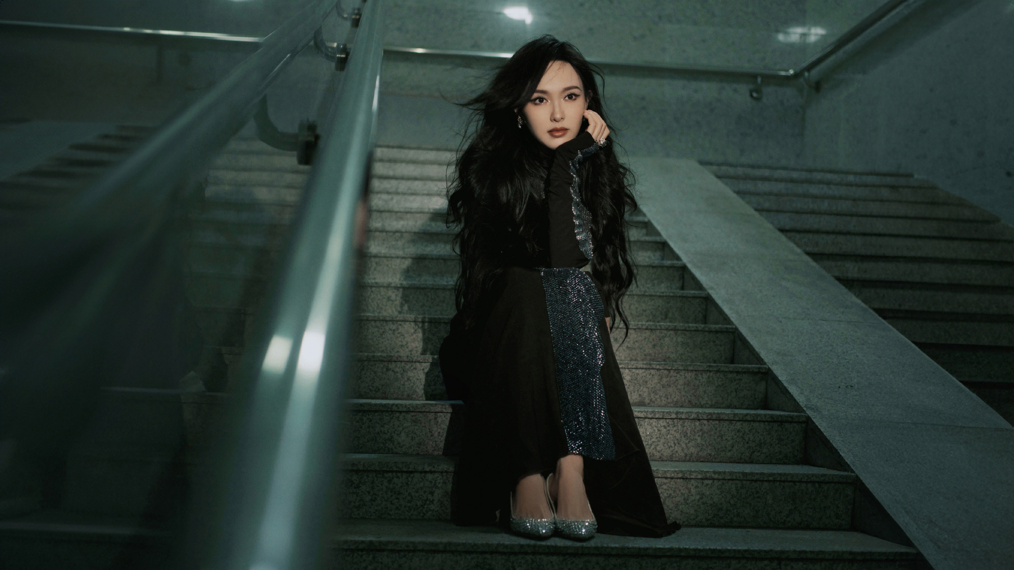 唐嫣,卷发红唇黑衣妆造,街角的浪漫。唐嫣状态
