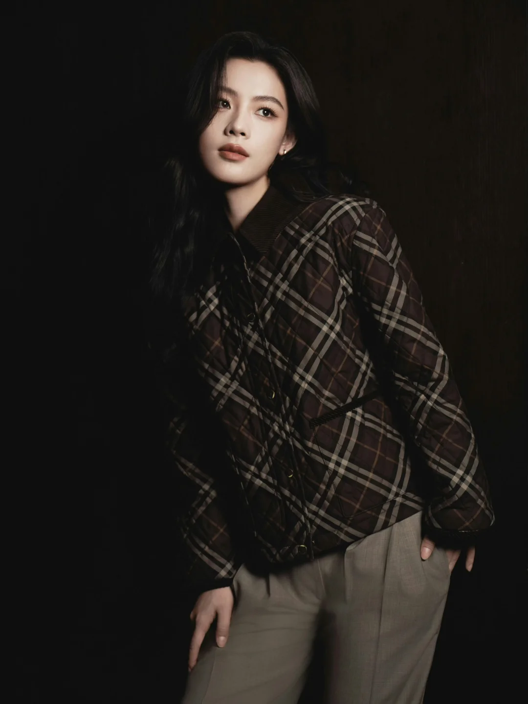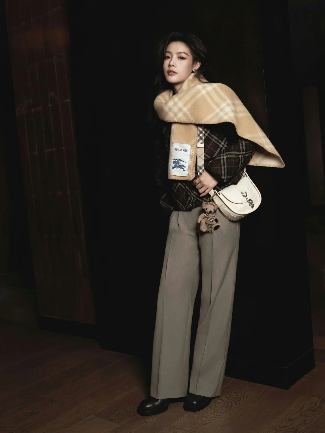陈丽君 in BURBERRY 身穿短款格纹棉质绗缝夹克,系上格纹羊毛围巾,还有小熊挂饰增添可爱气息,温暖舒适的冬日穿搭。#风格大赏##时尚灵感解读#时尚表现力 #时尚大片 #Burberry #女明星穿搭 #冬天营造氛围感靠的是围巾 #秋冬的围巾 #陈丽君 #陈丽君值得