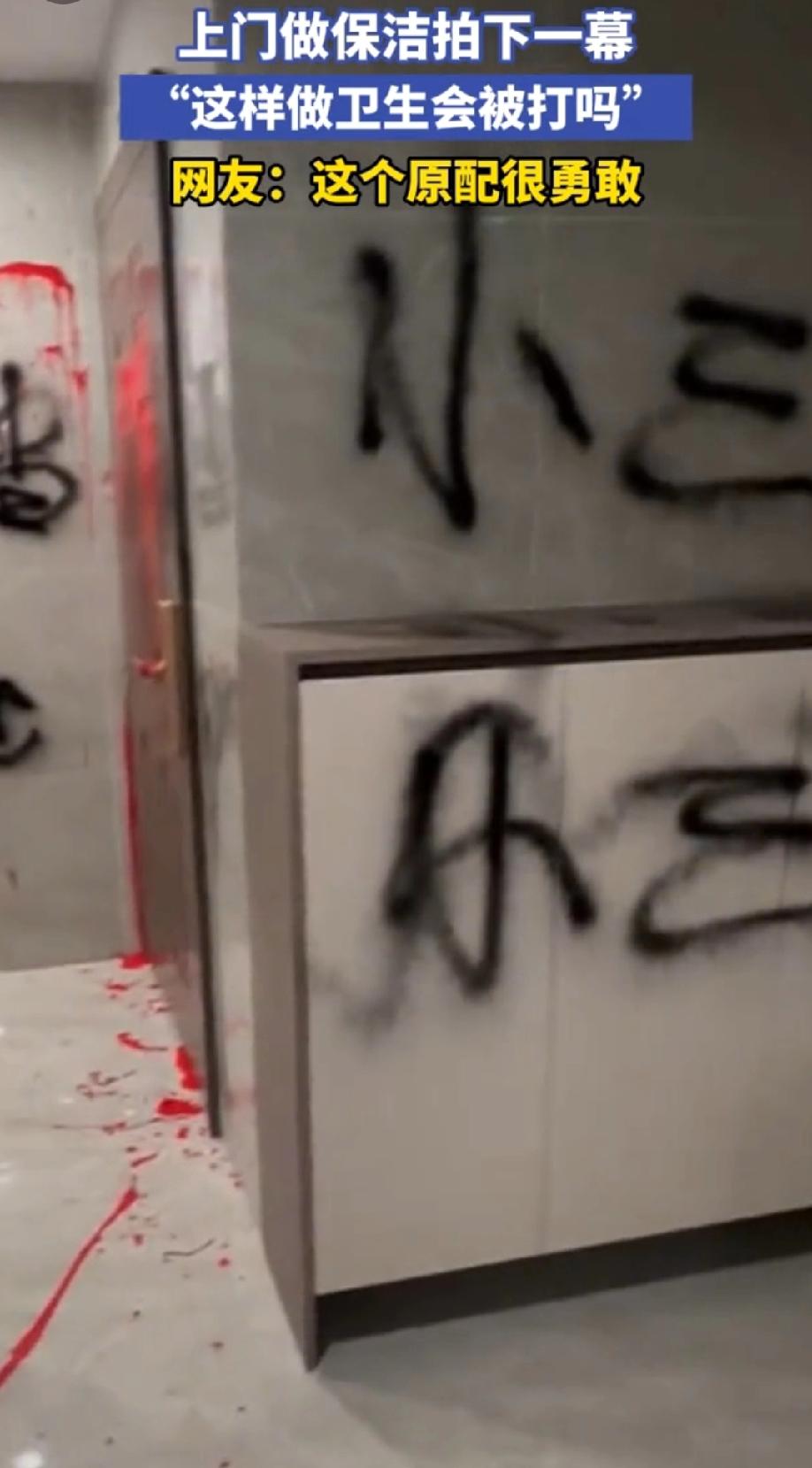 一保洁阿姨上门做保洁拍下这一幕,问网友“这样做卫生会被打吗?” 门上被泼了红色油漆,墙壁上写着“知三当三,可耻”,“小三”的字样。 做卫生不违法,可以联系一下原配来个合作,隔三差五来一次,成为长期稳定合作客户。一个喷发泄,一个擦料理后事。 不过原配得记住,喷油漆违法是愚蠢的行为。如果对方追究的话,也可以拘留3天。所以建议喷油漆的人理智点,回家找证据,让男的净身出户才是重点。 现在这社会知三当三的人很多,道德底线一次次刷新我的三观。明知道对方有妻子,还上赶着知三当三,也不怪原配这么生气,关键也没啥能制约小三的。 毕竟法律这边小三是空白一片,后续希望能跟上吧。