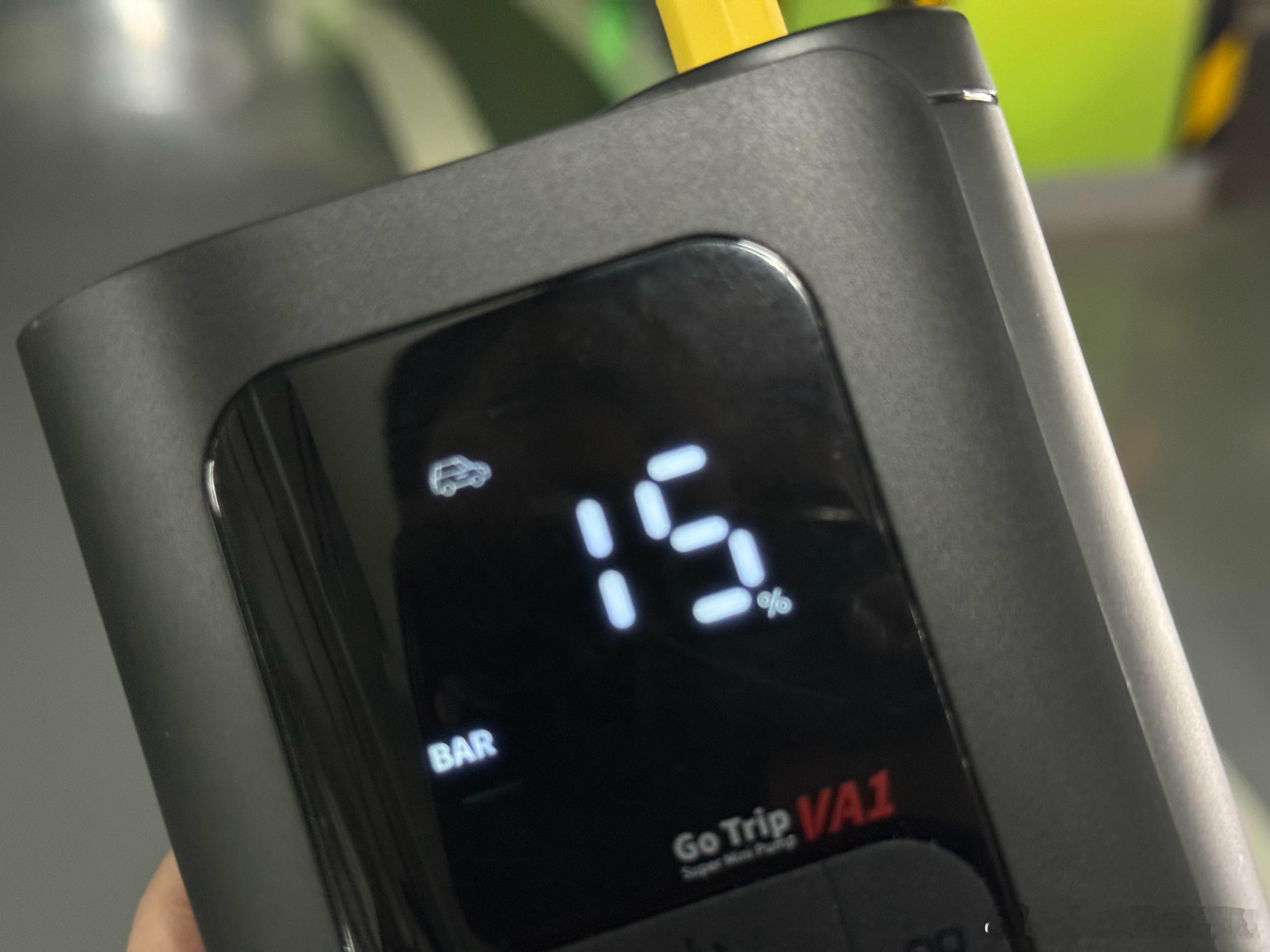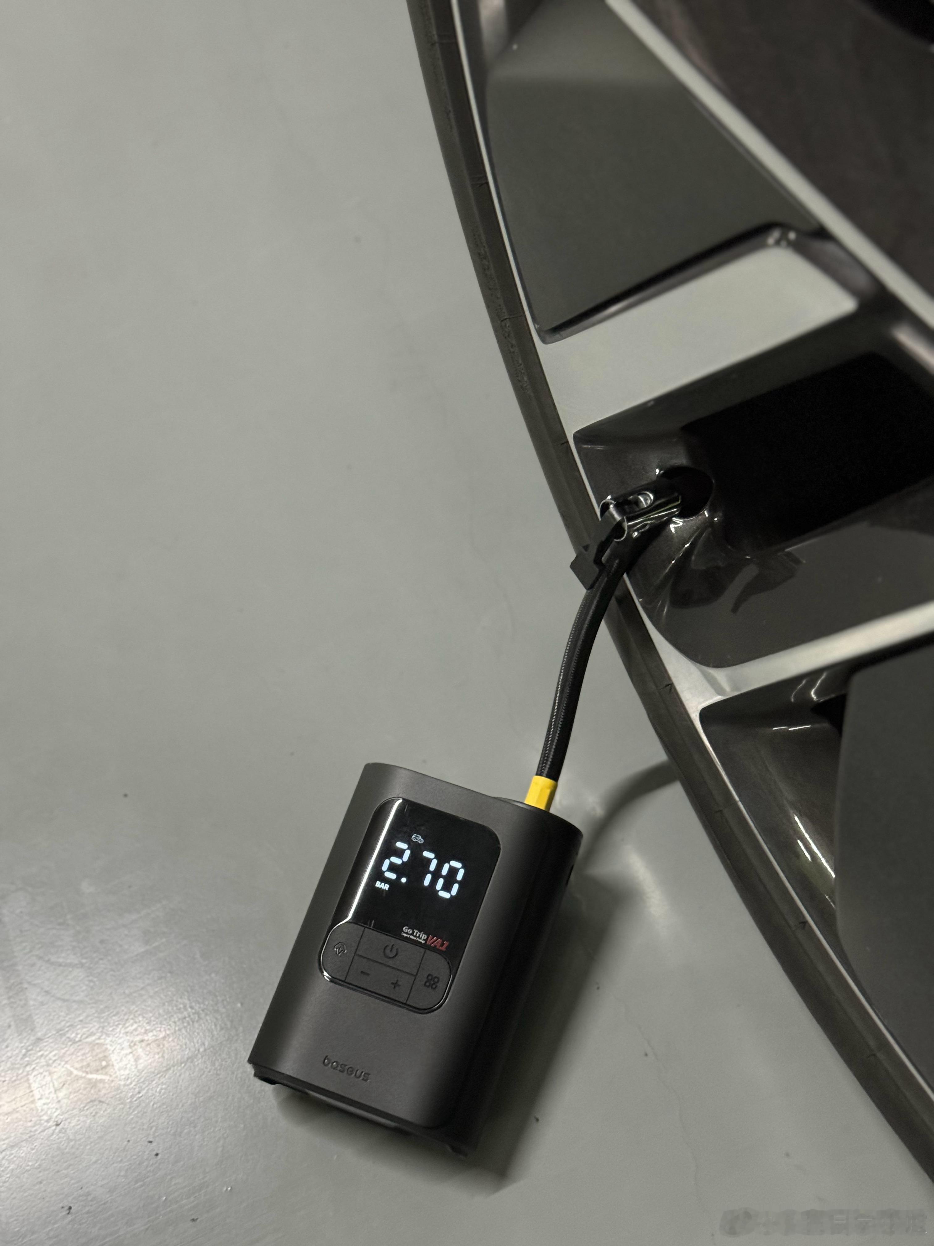 倍思这个充气泵挺好用的,早上借了同事的用了下。拿到的时候还剩 73% 左右的电量。然后把理想 L6 四个轮子的胎压从 2.2bar 打到了 2.7bar,最后还剩 15% 左右的电量。新能源汽车