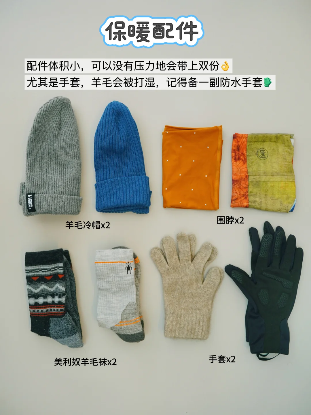 -手套 x2 :记得备一副防水款💦