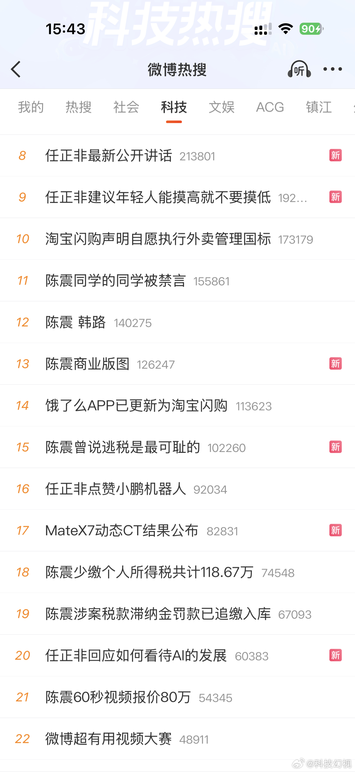有没有人统计过陈震今天上了多少个热搜?今天微博就指望着陈震了