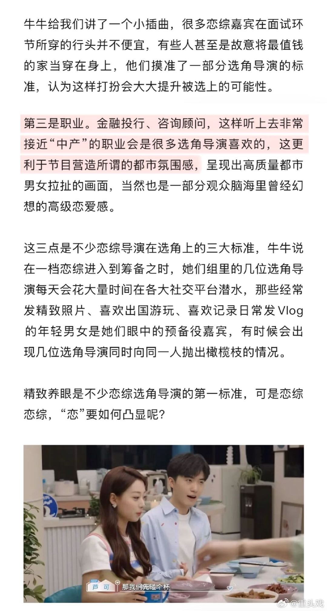 恋综是通往娱乐圈的大门吗业内谈恋综选角标准 恋综选角导演爆料,颜值、海归学历、中