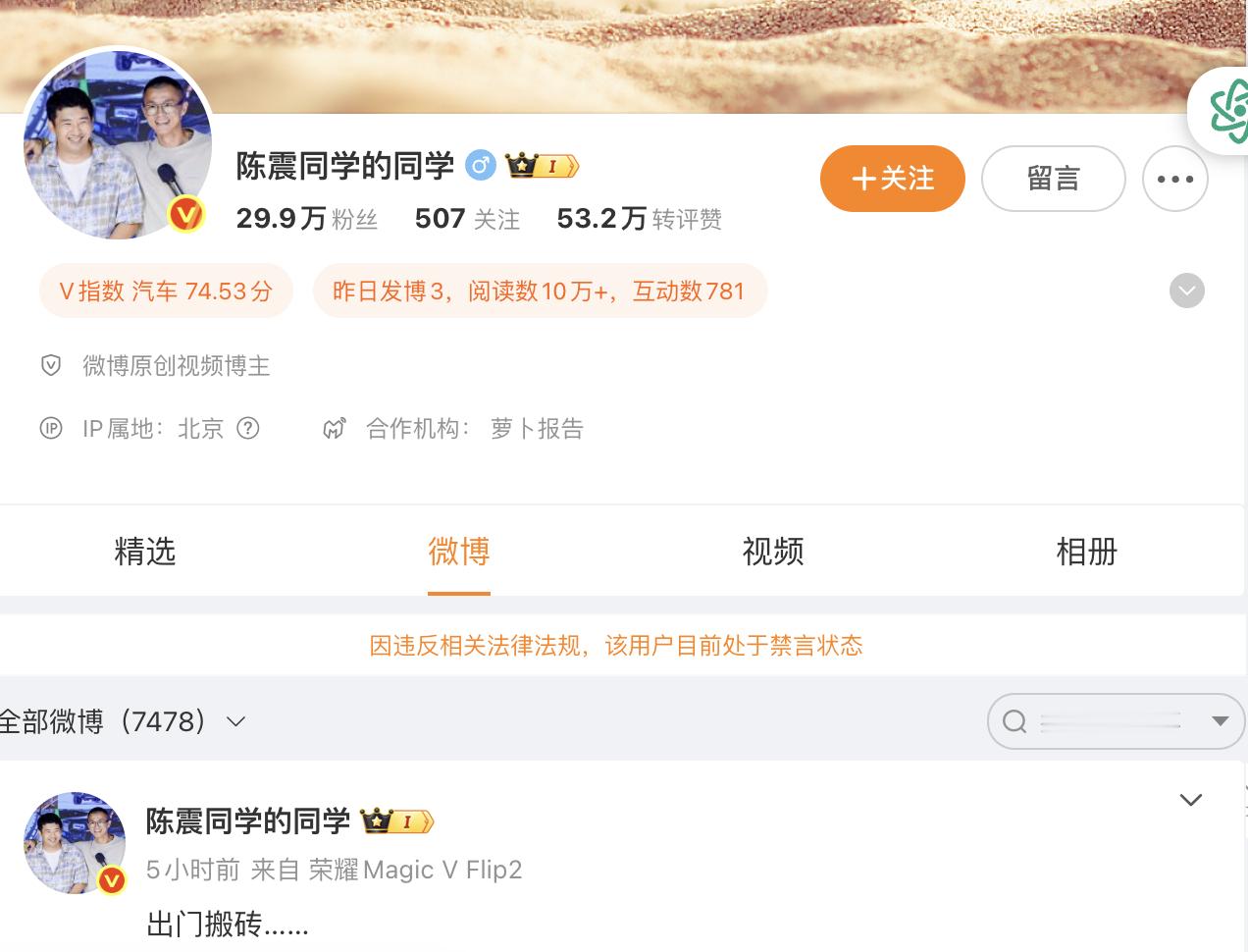 陈震偷税漏税,被央视报道了。陈震偷税追缴并罚共计247.48万元 谨言慎行的大前提是合法合规,纳税当然也是重要一环。现在,陈震的小号也被全平台禁封。