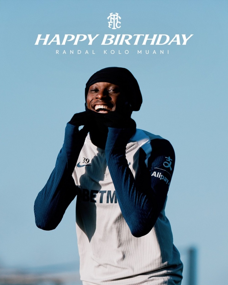热刺官方社媒晒出穆阿尼的生日海报,配文:“祝你生日快乐,科洛!”
