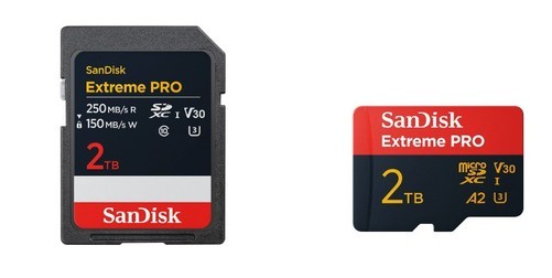 从左到右依次为闪迪至尊超极速SDUHS-I存储卡(V30)及闪迪至尊超极速移动microSDUHS-I存储卡(V30)