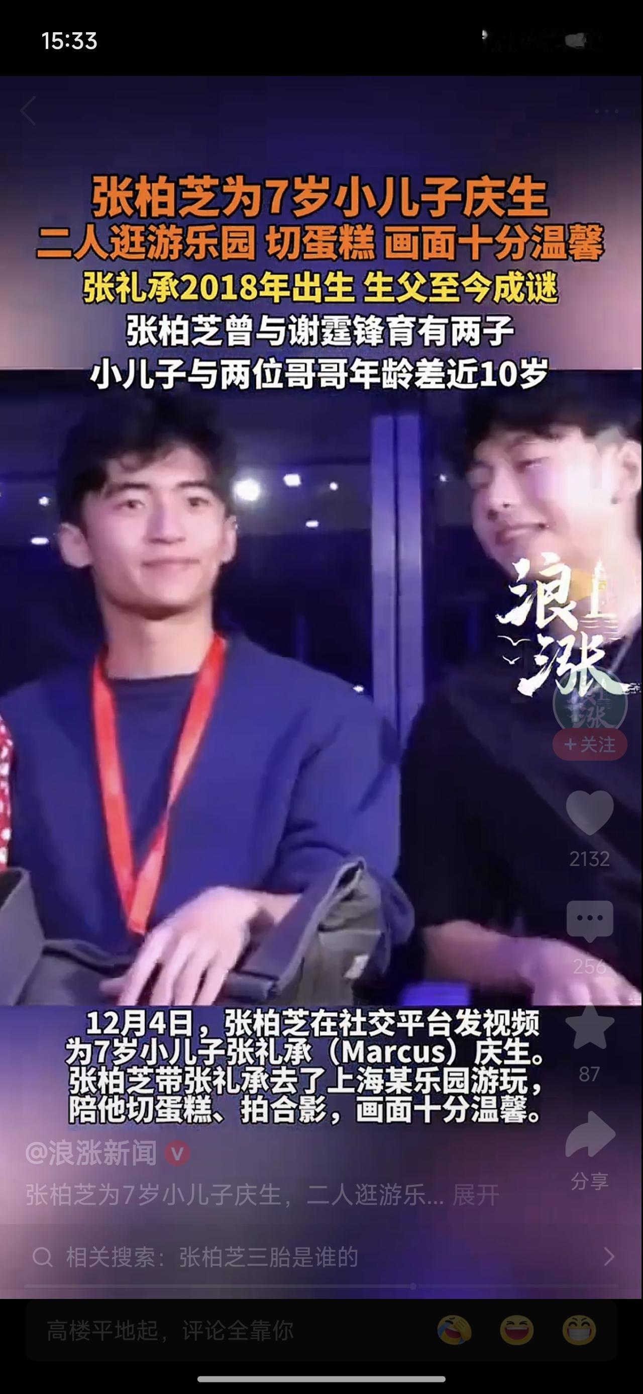 张柏芝给小儿子庆生。小儿子跟随母姓,生父成迷。 不过没关系,柏芝靠自己也能养活三个孩子。何况霆锋还是给抚养费的。 小儿子,不是没有父亲,是人家没有公开。前两个,老大和老二是谢霆锋的。长得还行,不知是岁数小,还是不会耍酷,感觉没有父亲的容貌帅气。 张柏芝的容貌一阵一阵的,如果说没有医美,不可能一会儿好一会儿差,但她应该没有过度医美,每一次状态好的时候,看着就三十出头儿。真是美的不得了。 三个儿子,真是有福气啊!等三个孩子都成家了,一到逢年过节,家里都是一屋子的人。人财两旺啊!张柏芝 谢霆锋,张柏芝