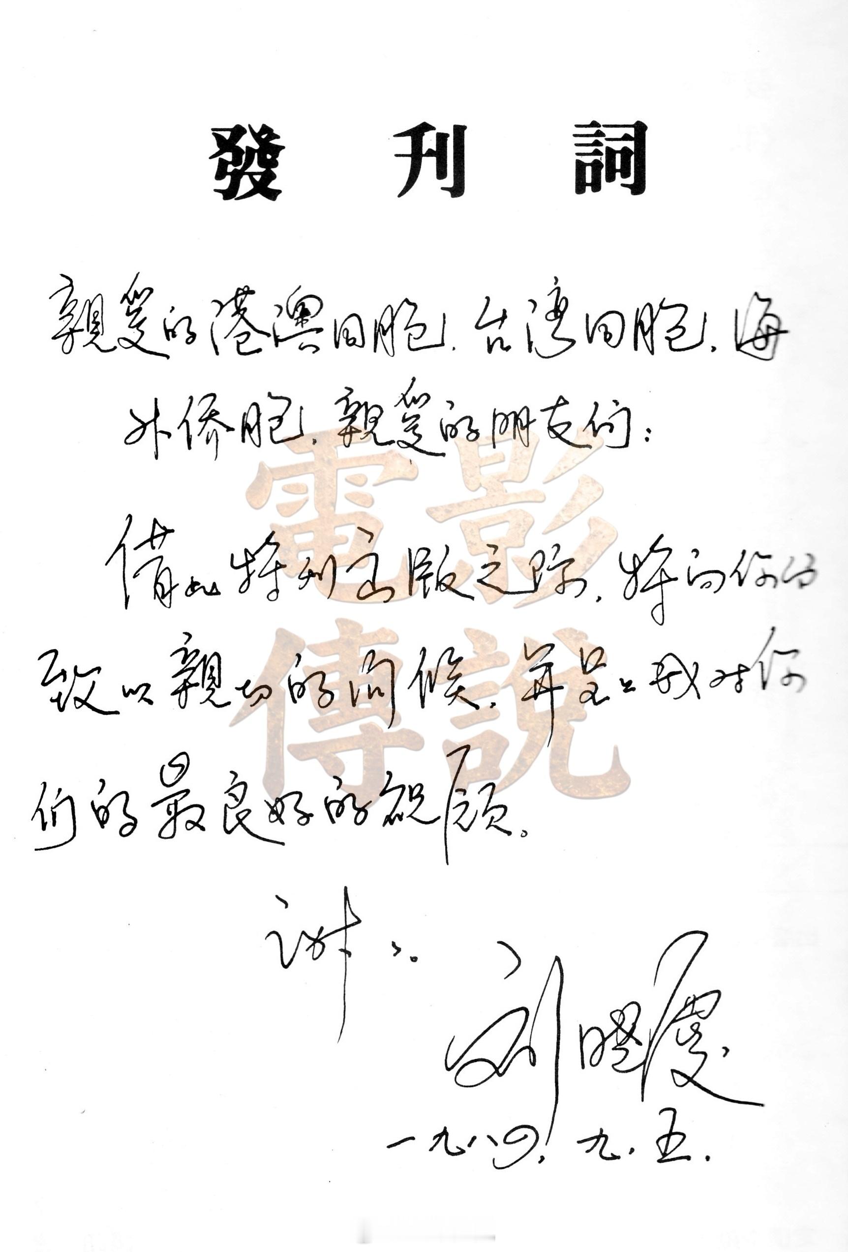 電影傳說扫描 1984年,HK为刘晓庆 出版了个人特刊(图一),封面的照片由著名摄影师梁海平拍摄,与另外一张被广泛重复使用的照片(图三)是同一个系列。刘晓庆还为特刊手写了《发刊词》,不得不说在演员里面,刘晓庆的字写得还是非常不错的。