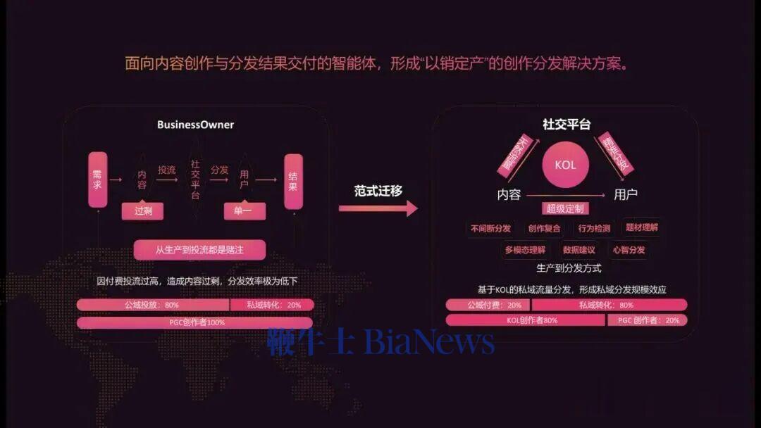 第二,我们花重金投流、推广,发现投流效率有问题,导致ROI有问题,不挣钱,这是两个最大的痛点。最重要最核心的是现在所有内容行业都是以产定销的传统内容方式。