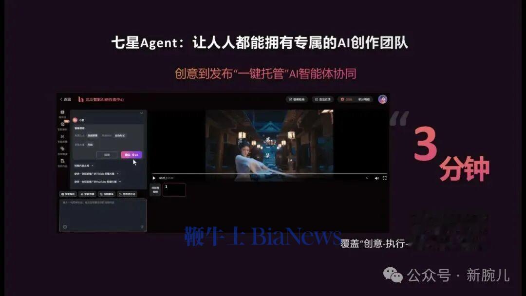 胡博涛表示,七星Agent中的翻译Agent不仅能精准翻译,还能还原台词情感与场景适配,让海外用户产生共情;该工具可将内容制作效率提升20倍,原本几小时的流程缩短至10分钟,实现批量视频发布。
