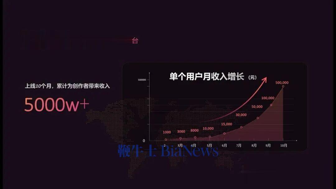这是一个比较振奋人心的数据。上线十个月以来,我们总共为参与创作者包括MCN机构带来的收入大于5000万人民币,并且最高增长还在不断提升,从0到1加入我们的有些个体创作者每个月已经达到了50万以上的收入。也欢迎一些还没有加入海外社媒、内容分销推广的机构和我们一起把业务做得繁荣,所以我们也开发了七星巨浪机构合作平台,大家可以申请合作。
