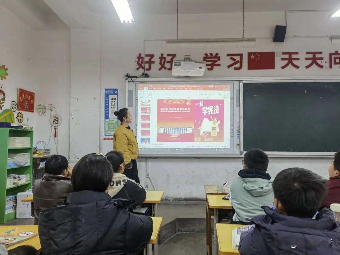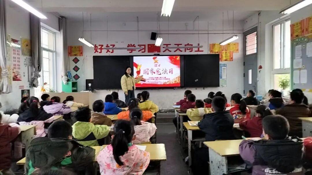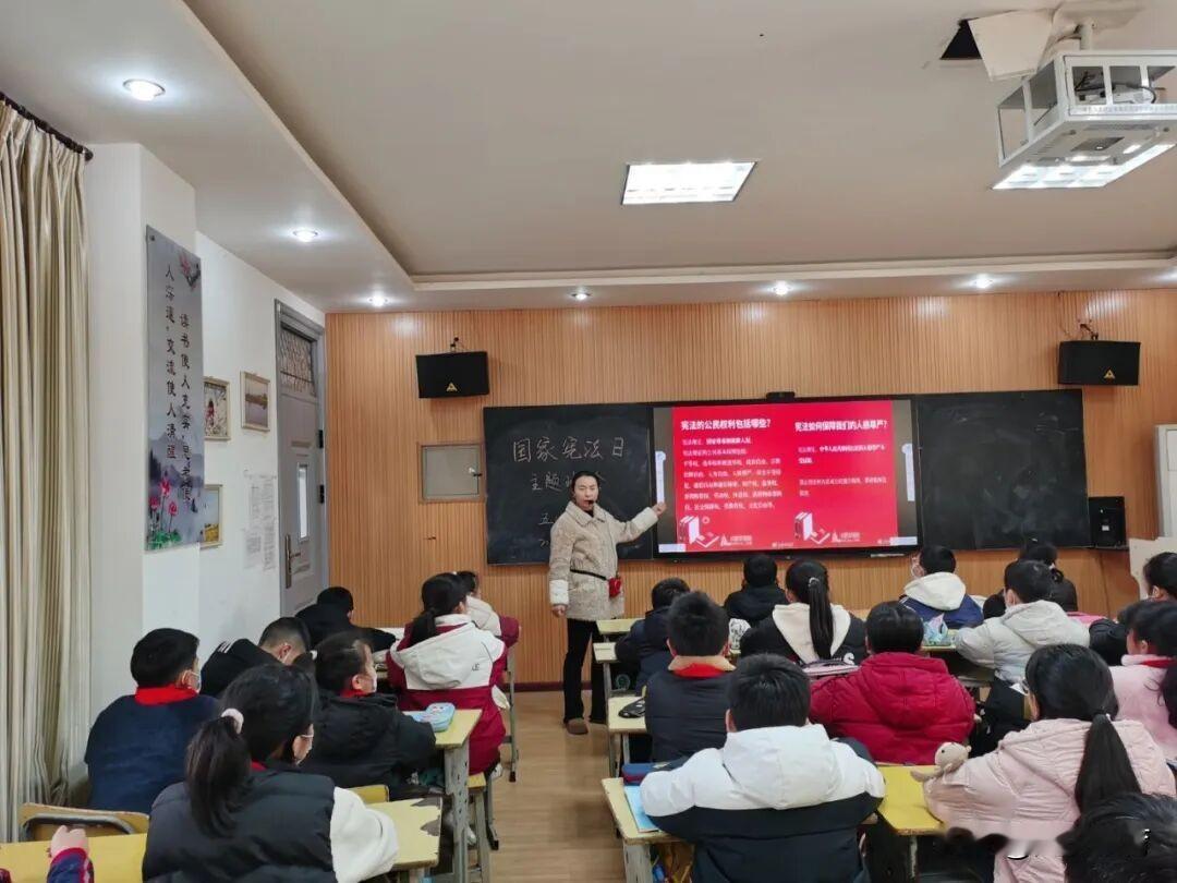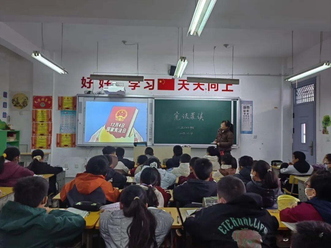 近日,汉台区三丰阁小学围绕“法润童心,护航成长”主题,组织开展了一系列宪法宣传教育活动,让法治的阳光洒满校园,让宪法的声音回荡在每一个孩子心中。 迎着清晨的朝阳,“国旗下讲话”拉开了宪法日活动的序幕。五(2)中队李坤阳同学以《宪法守护我成长》为题,用稚嫩却坚定的声音分享宪法小故事,号召全体同学将宪法精神融入日常,从遵守校纪校规、尊重师长同学等小事做起,让法治信仰的种子在心中扎根。各班级同步开展“宪法在我心中”主题班队会。课堂上,班主任通过趣味动画、案例讲解等形式,将抽象的宪法条文转化为贴近生活的小故事。同学们在轻松愉悦的氛围中理解宪法与自身的紧密联系,树立“知法、懂法、守法”的意识。“中华人民共和国公民在法律面前一律平等……”清晨的校园里,传来阵阵整齐响亮的诵读声。“宪法诵读”不仅是对宪法条文的学习,更是对法治精神的传承,同学们在沉浸式诵读中感受着宪法的庄严与力量。笔墨传情,法润童心。队员们以笔为媒,将宪法名言、法治格言融入书法创作。一撇一捺间,不仅展现了扎实的书写功底,更传递出对宪法的尊崇与理解。一幅幅作品成为冬日校园里一道独特的“法治风景线”。此次宪法日系列活动,让抽象的法律知识变得生动可感,为同学们搭建了学习宪法、了解宪法的平台。未来,三丰阁小学将持续推进法治教育,让宪法精神成为守护学生成长的“护身符”,助力每一位少年在法治阳光下健康成长!