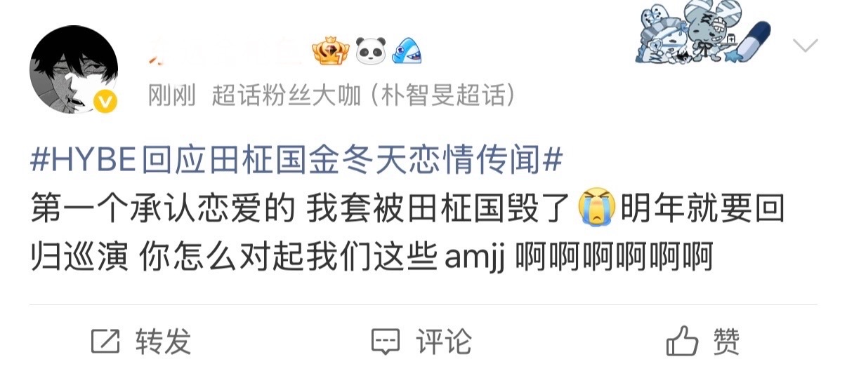 宁艺卓和朴智旻 fans 在HYBE回应田柾国金冬天恋情传闻热演中