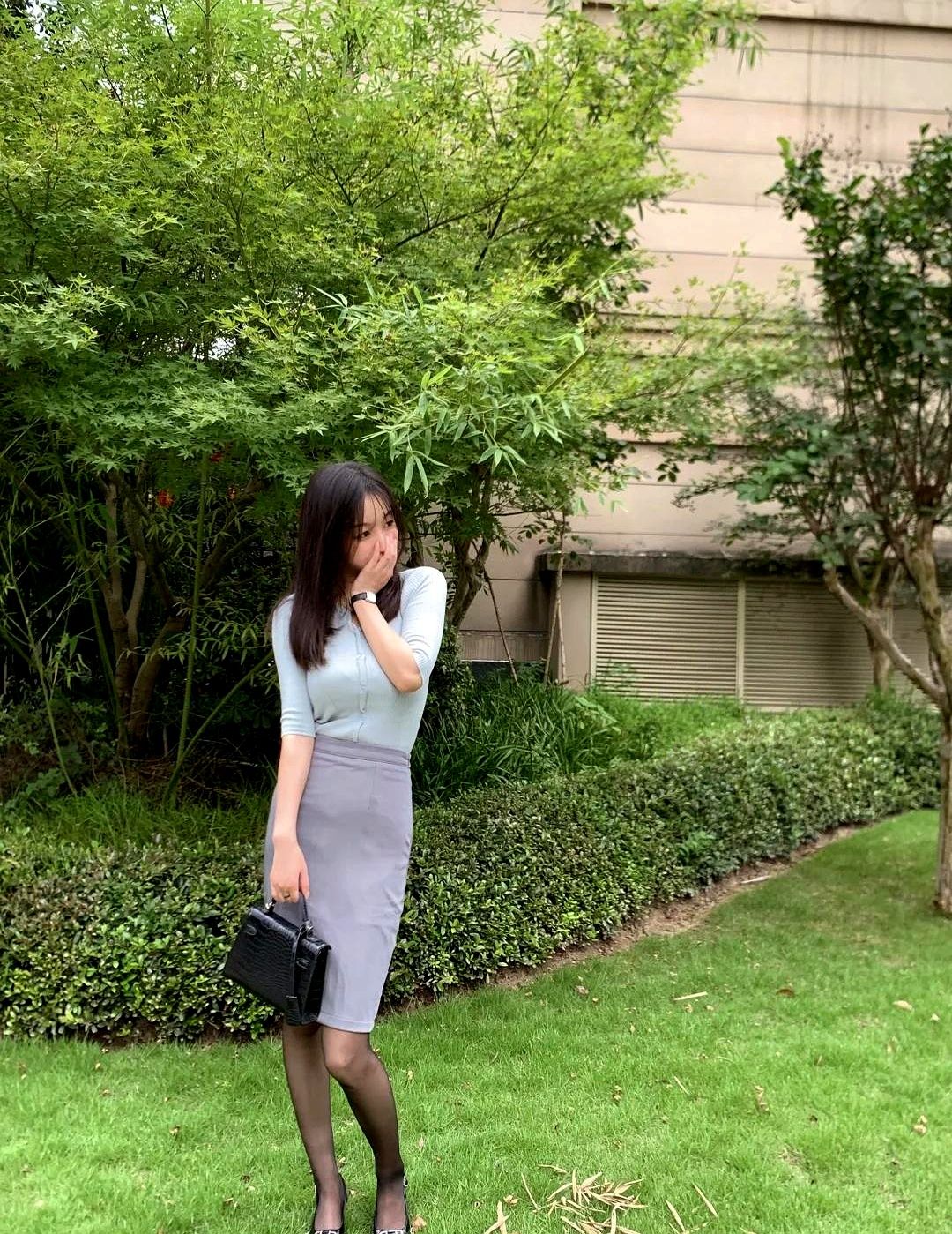 今早刷到那位博主,包臀裙配衬衫,颜色像刚化开的奶咖,裙摆卡在膝盖上两公分,走路时大腿布料微微绷紧又松开,像在说“我认真上班,但也不忘好看”。