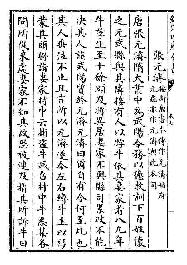 《折狱龟鉴·卷七·钩慝》之张允济(元济)智判牛案。