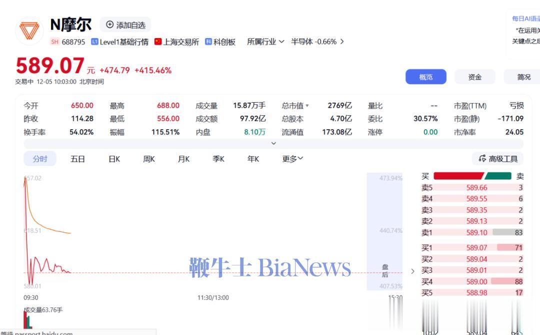 12月5日,国产GPU企业摩尔线程登陆科创板,上市首日股价一度暴涨超400%。