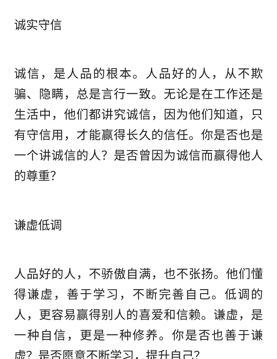 人品好的十个特征,看看你有几个?人品好人,一般有下面十个特征