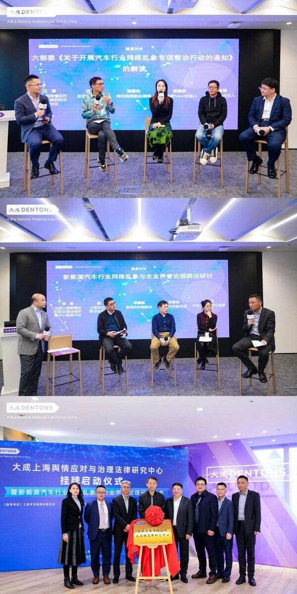 上海2025年12月5日--在数字化浪潮席卷的当下,网络舆情呈现"双刃剑"效应:既为企业品牌传播带来机遇,也因网络乱象频发使企业声誉面临严峻挑战。积极响应国家关于加强网络生态治理的号召,大成上海敏锐把握时代趋势,于2025年11月29日正式成立大成上海舆情应对与治理法律研究中心,并同步举办"新能源汽车行业网络乱象与企业声誉治理研讨沙龙"。该活动由上海市互联网业联合会指导、北京大成(上海)律师事务所主办、华东理工大学法学院协办,旨在汇聚多方智慧,共商新能源汽车行业网络生态治理路径,探索符合新时代要求的企业声誉维护机制。