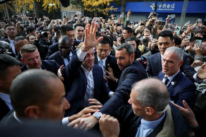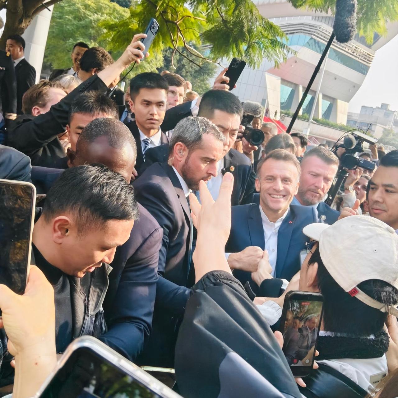 马克龙的笑得太开心了! 12月5日,马克龙在四川大学访问,让他想不到的是四川大学的大学生这么热情,很多人都主动想和马克龙去握手,而马克龙看到大学生们这么开心,马克龙的嘴也笑的咧开了,估计很多人可以拿马克龙这个画面当表情包了。当然了也许是大学生没有看到过真实的马克龙,所以能够见一下真人或者和马克龙握一下手真是一辈子的荣誉了。马克龙估计也想不到自己这么受欢迎,就算是娱乐圈的顶流明星来也不至于这样。据悉马克龙和夫人访问完四川大学和大熊猫基地就要返程了,在下午的时候,马克龙夫人没有和马克龙一起来四川大学,而是去了成都熊猫基地。由于时间紧迫,两人也只好分开参加活动。