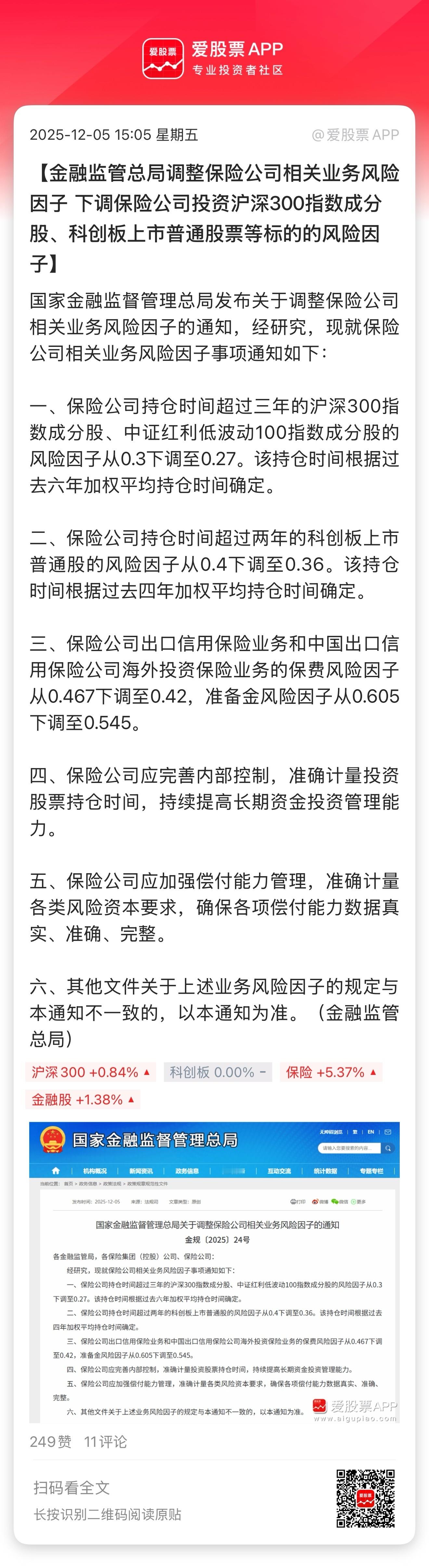 今天下午保险股大涨,带动券商也大涨,最终把A股全带起来了!很多人在找保险股涨的原因,终于找到了,大摩将中国平安加入重点关注名单。但盘后才知道,原来是金融监管总局放大招了。金融监管总局下调保险公司风险因子,相当于给险资松绑加杠杆了,释放了更多资金,有利于险资加大投资!监管层这是明确这是鼓励险资加大入市力度了。