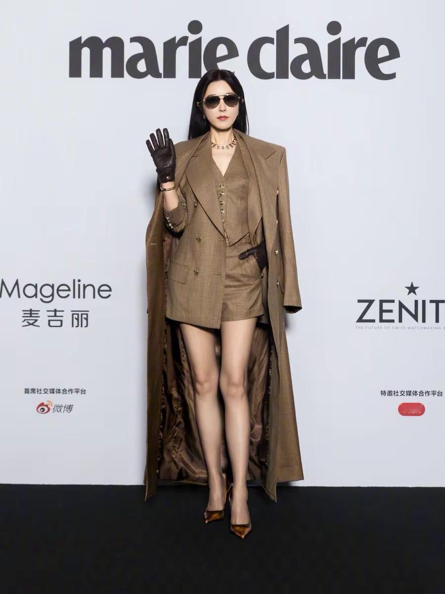 王丽坤红色渐变色长裙气质优雅王丽坤40岁的年龄20岁的身材