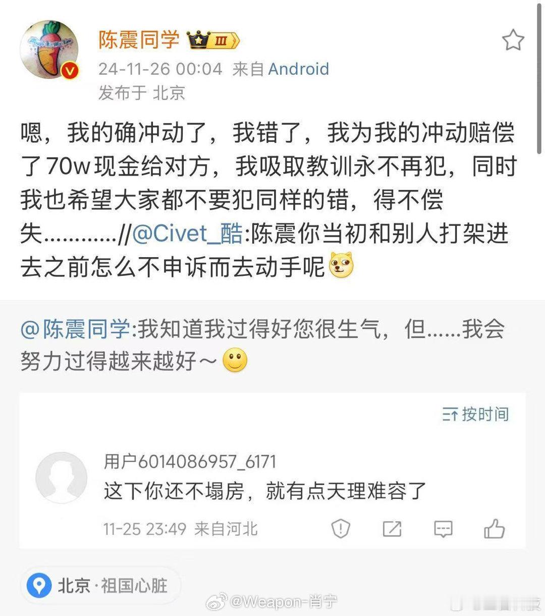 起底陈震陈震曾因飙车被行政拘留7天 第一次知道他,是因为二环路13分钟的事,但这么多年下来,并未听过他有就此事深刻的反省。作为公众人物,这不是一个榜样。结果最近又在北京开车逆行撞车。之前鼓吹只买交强险的言论也让人大跌眼镜。这次因为偷税漏税被处理,只能说咎由自取了。支持国家的清朗行动,对这样的博主进行甄别和清理,让网络环境“清朗”起来。