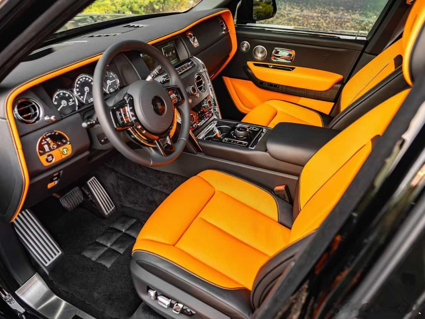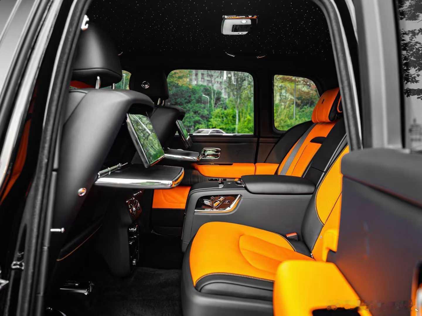 劳斯莱斯库里南 四座,25年1月上牌,1900km,钻石黑/爱马仕橙内,流星顶,ACC,前后排座椅加热,后娱,Bespoke音响,冰箱酒柜等