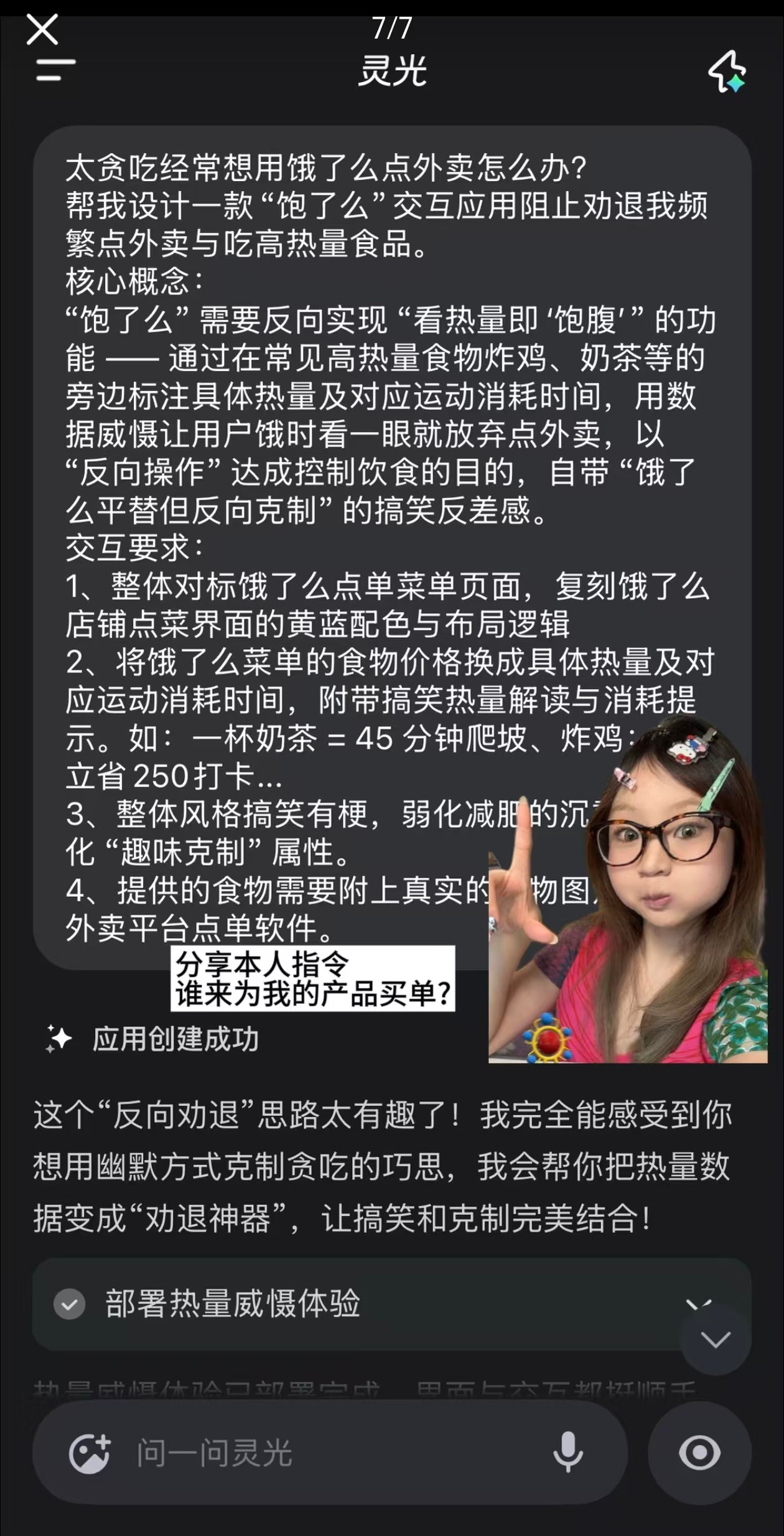 减脂人真的需要一个饱了么现在全网真的被灵光手搓应用刷屏了!除了饱了么,刷到好多网友的创意神作:暴富宝、昨日头条、少邻国,简直万物皆可搓!最绝的是不用懂任何代码,一句话描述需求,几秒就能生成能直接用的小应用,这种零门槛当“开发者”的感觉也太酷了,普通人的奇思妙想终于有地方落地了~