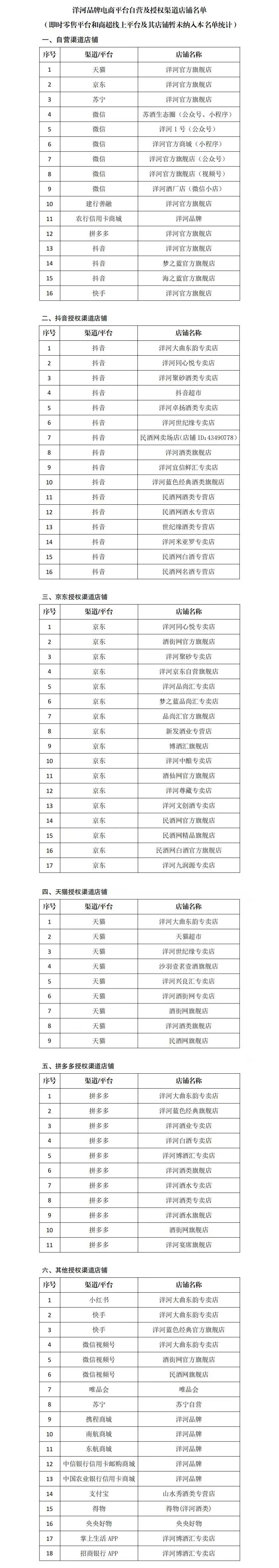 11月以来,白酒行业掀起电商渠道治理规范热潮,茅台、五粮液等多家头部酒企相继出台措施净化线上销售环境。为响应行业规范趋势,切实守护消费者合法权益,12月5日下午,洋河股份通过微信公众号“梦之蓝社区”正式发布《告消费者书》,并同步公示了首批87家“洋河品牌电商平台自营及授权渠道店铺名单”。