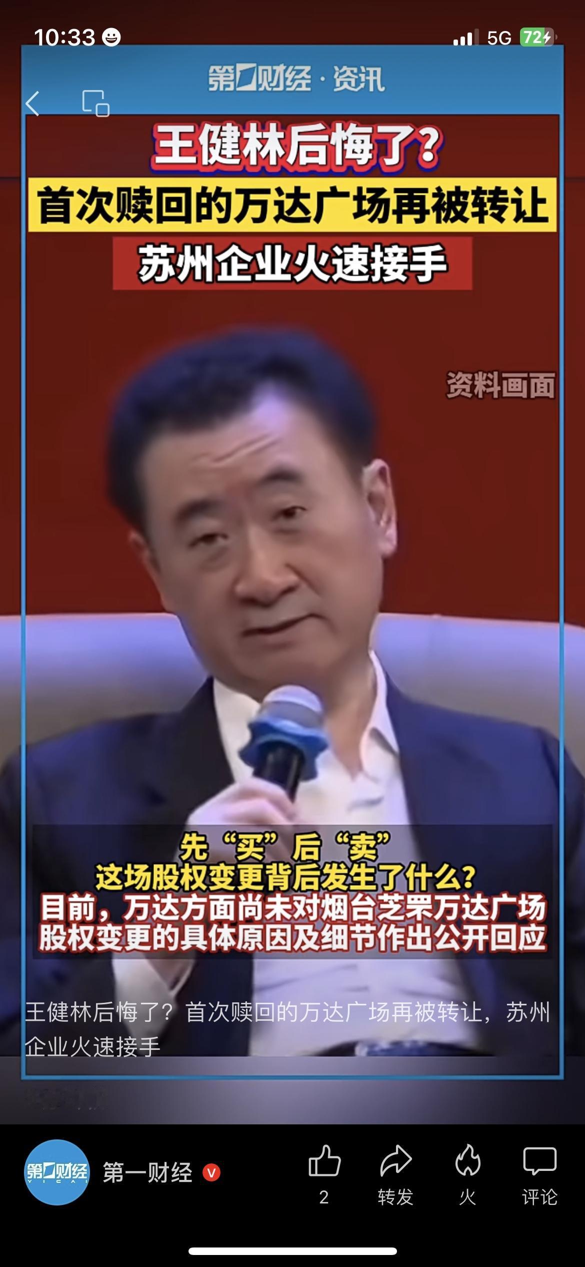 万达:王健林刚赎回来的广场,又卖了?】 刚刷到个大消息——王健林头回从别人手里赎回来的万达广场,才攥了没俩月,又转手卖了! 12月2号烟台芝罘万达广场突然工商变更:之前接手的新华保险两家公司直接退出,苏州一家企业火速接盘。这广场去年7月万达自己卖出去的,今年9月才花大价钱赎回来,现在又转手,这操作给我看懵了! 有人说这是万达缺钱回笼资金,也有人猜是这广场运营没达到预期。但不管咋说,从“卖”到“赎”再到“卖”,才半年多就绕一圈,王健林这波到底是赚了还是亏了? 万达广场 王健林