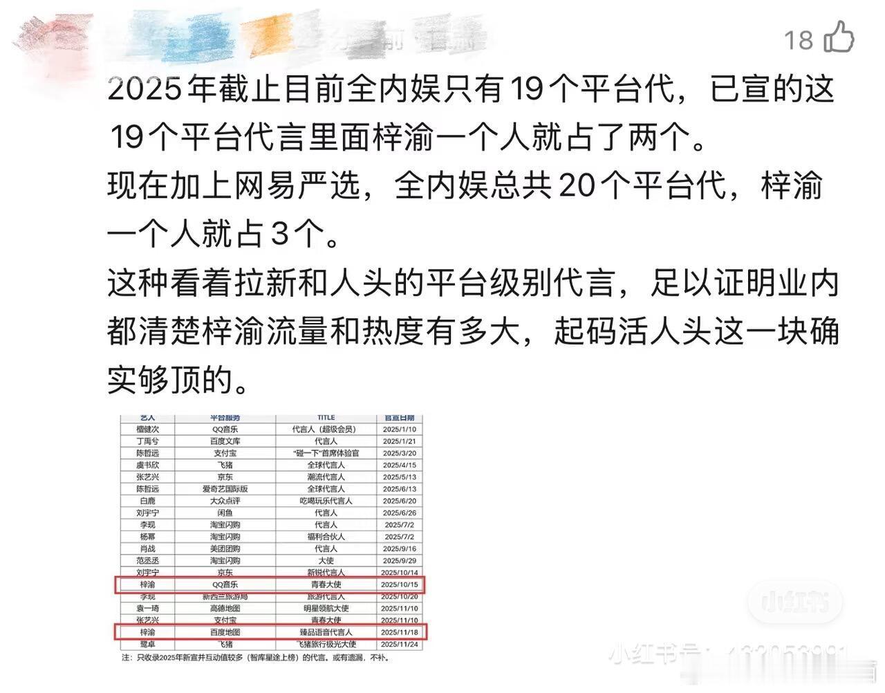 梓渝 三平台代言:百度、QQ音乐、网易严选的含金量🈶看看路人怎么羡慕的吧,跟着梓渝的步伐就是这么爽梓渝商业价值