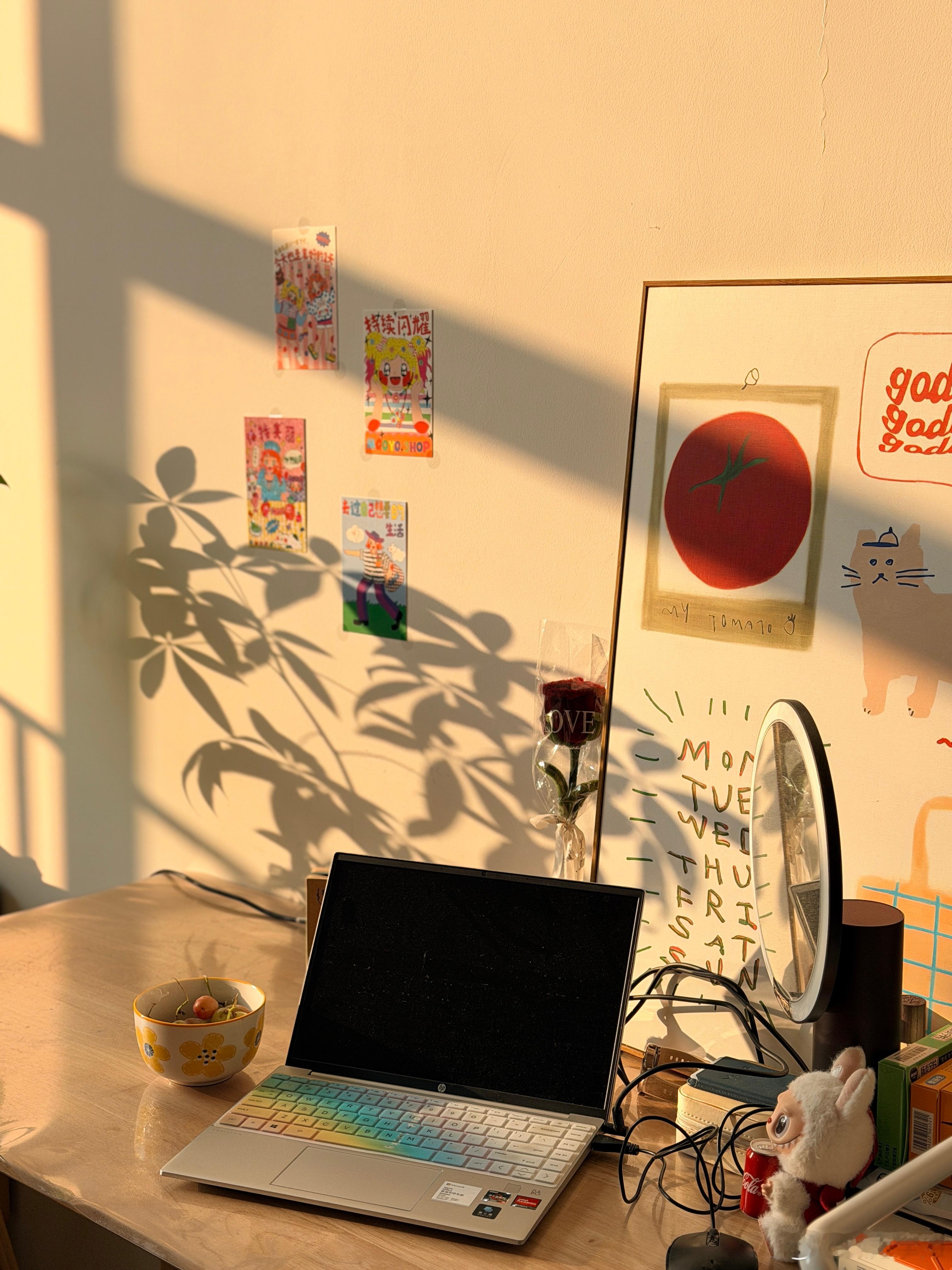 喜欢我家的办公一角~夕阳洒进来的瞬间也太治愈了