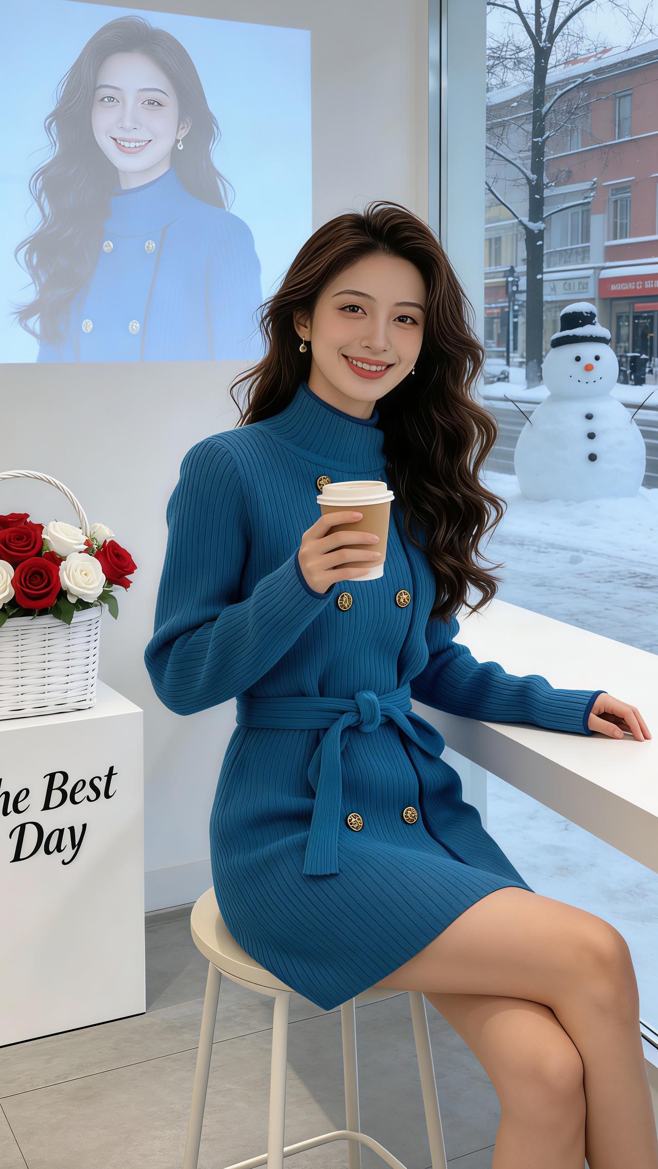 高级穿搭 慵懒风穿搭 小香风蓝色针织外套 穿搭 冬季搭配
