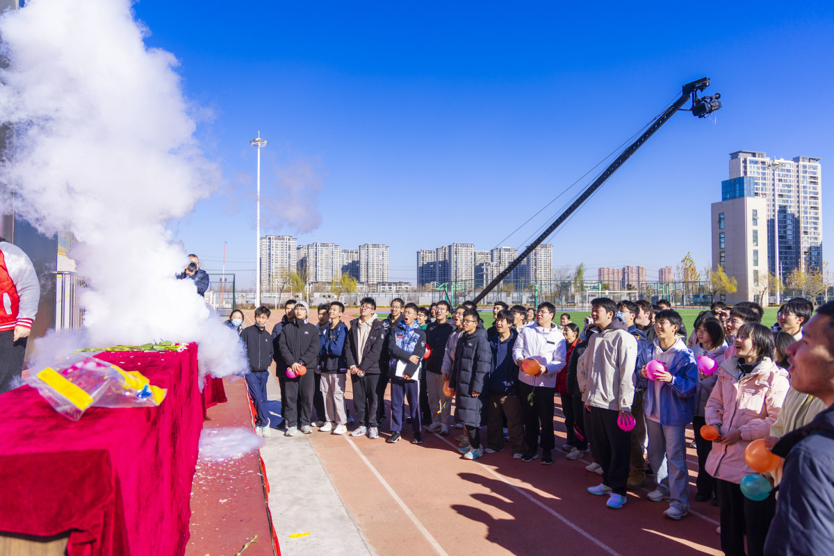一枚枚水火箭拖着尾烟呼啸升空,引得全场惊呼;液氮实验制造的“仙境”云雾在操场上缭绕扩散,瞬间点燃了冬日的热情……12月3日上午,以“科技之光照亮报国之路”为主题的郑州龙湖一中第二届科技文化周系列活动正式启幕,整个校园化身为充满奇思妙想的科技乐园。