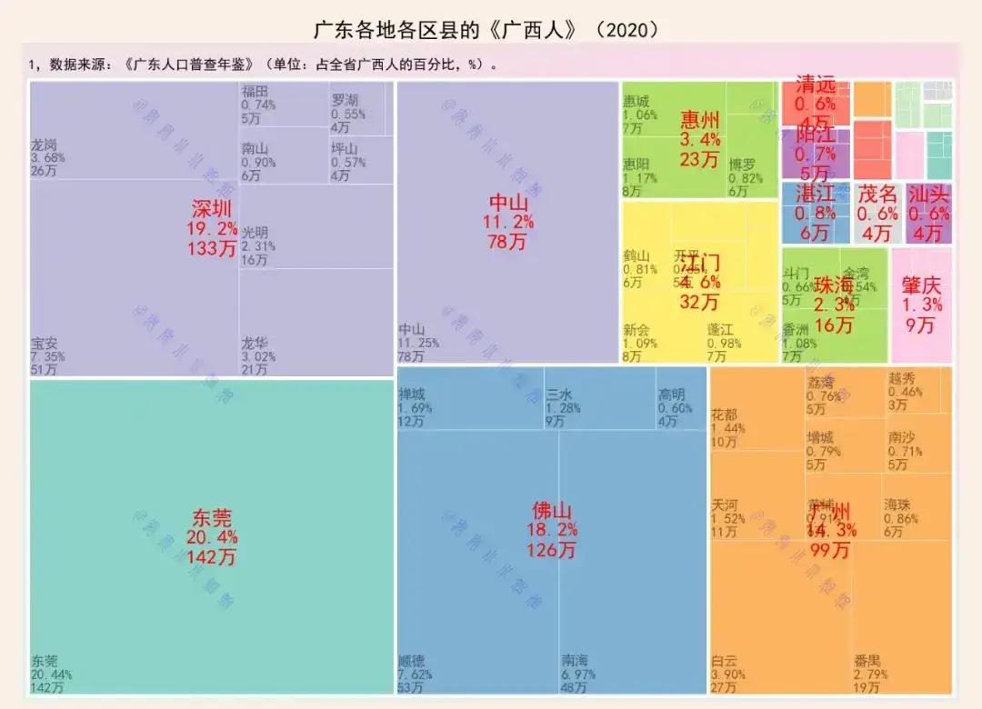 湖南人的第二省会是“深圳”,广西人的第二省会就是“东莞”。广西外出打工最多人的城市就是东莞,142万,占比13.57%,比我们县人口还多32万。东莞外省人最多的就是广西人。