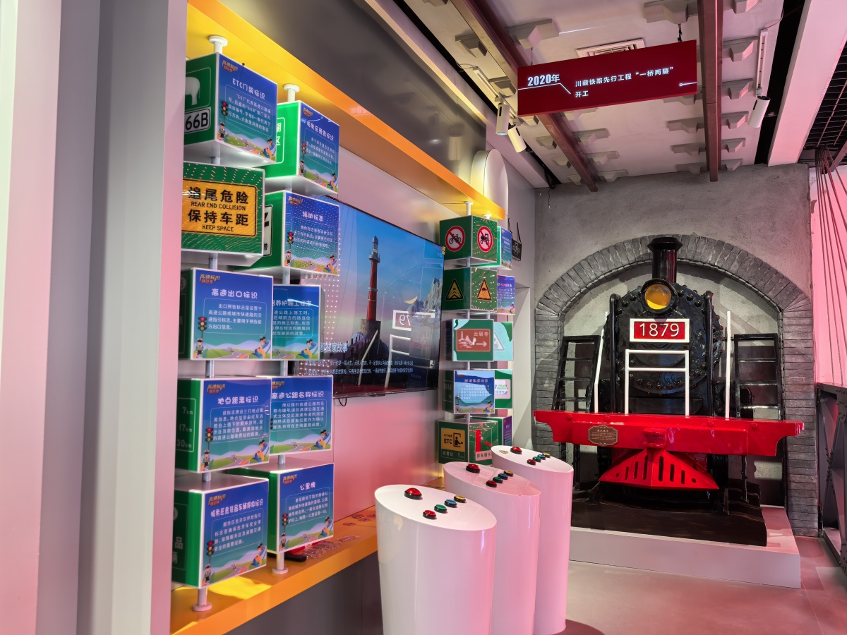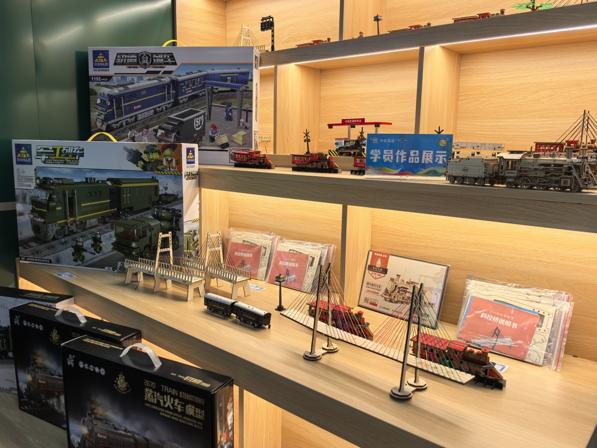 国内首家“开路先锋”创客基地尤为吸睛,以中国中铁企业文化为核心,集中展示盾构机模型、铁路发展历程,还原绿皮火车车厢场景,搭配手工制作体验区和沉浸式影像观赏区,成为兼具科普与趣味的研学空间,不少游客驻足体验、拍照留念。