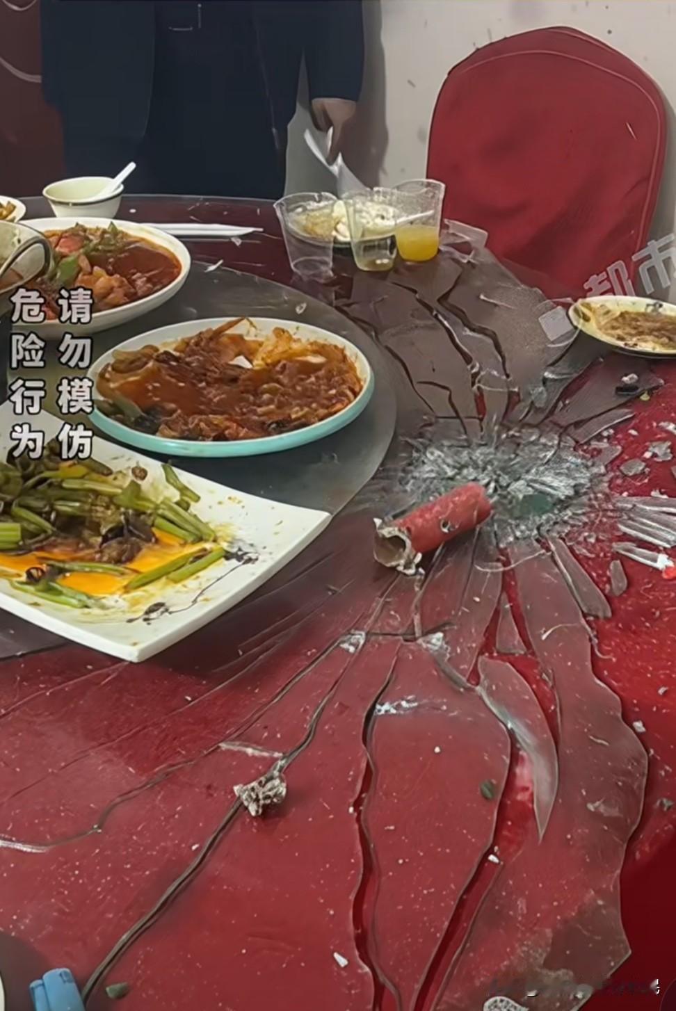 哥们儿几个想着聚聚餐,一起说说话,吃吃喝喝,谁知道其中一哥们儿酒后犯浑,餐桌上点了二踢脚。 一开始以为他是烘托气氛,拿的玩具,直到他用打火机点燃炮捻,有了哧哧的响声,一桌子人才反应过来,他点的真二踢脚。众人抱头鼠窜,最后把餐桌后玻璃都炸了。 这种朋友还能继续深交吗? 这是借着喝多闹事呢,他清醒的很多。