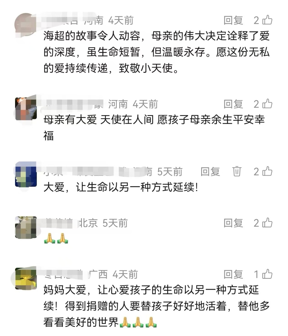 “母亲的伟大决定诠释了爱的深度,虽生命短暂,但温暖永存。愿这份无私的爱持续传递,致敬小天使。”